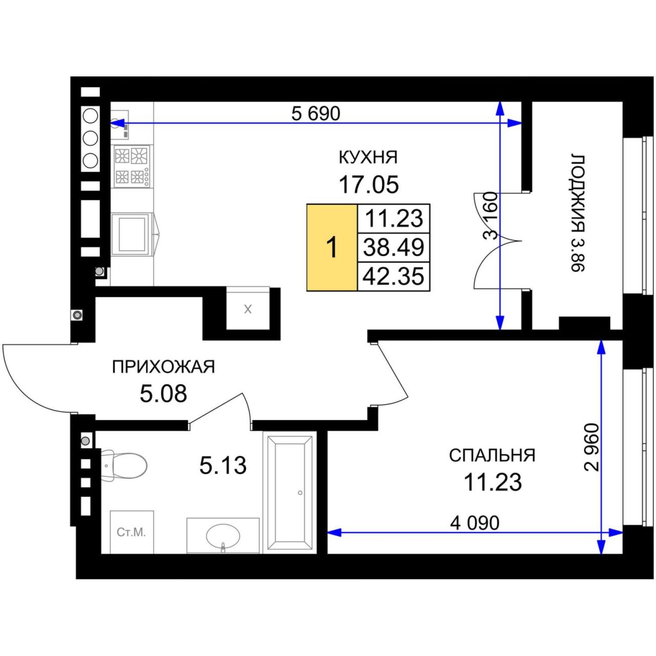 Продается 1-комн. квартира, площадью 42.36 м2 в монолитно-кирпичной новостройке. Возможен вариант покупки с использованием ипотечных средств, есть рассрочка, возможна покупка с...