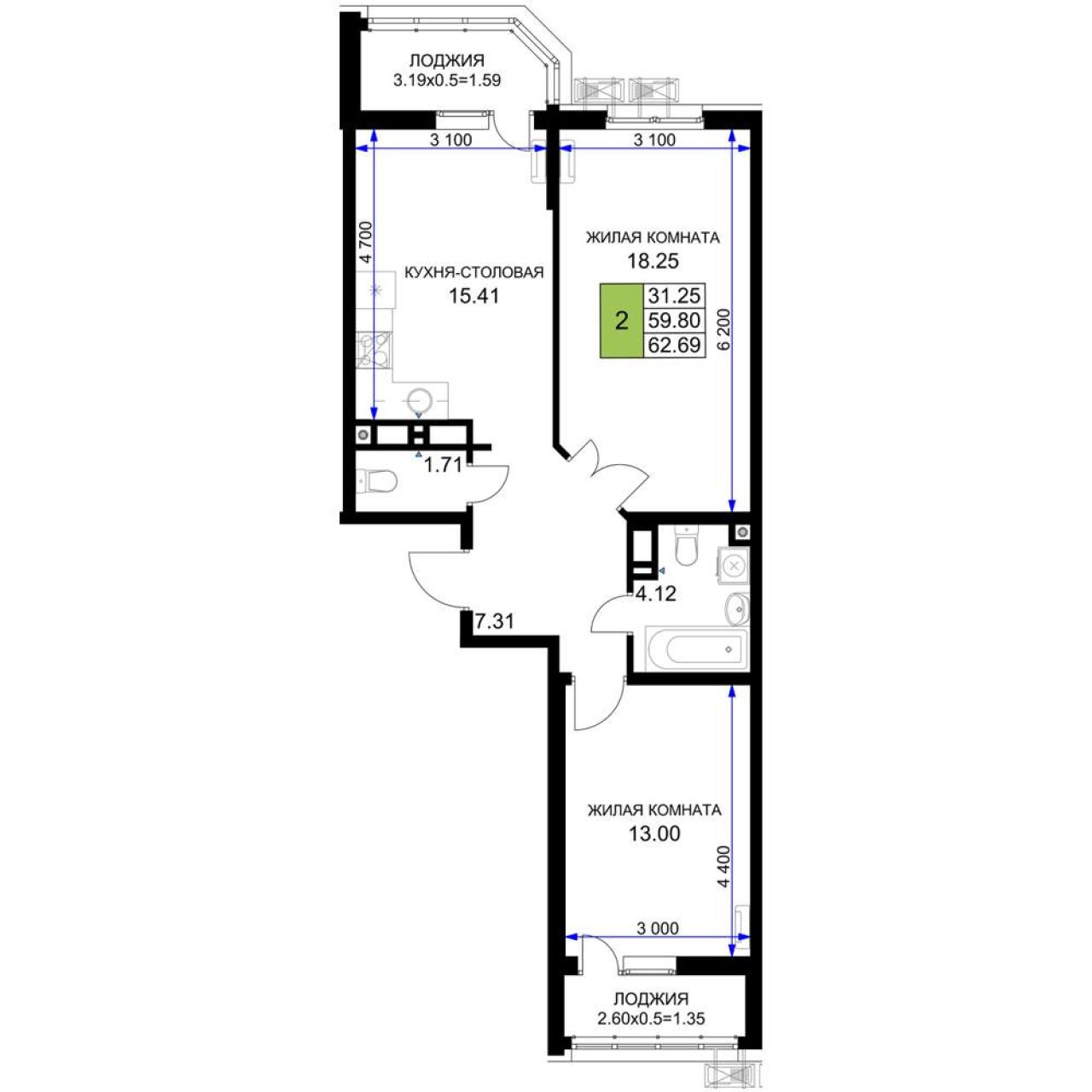 Продается 2-комн. квартира, площадью 62.69 м2 в монолитно-кирпичной новостройке. Возможен вариант покупки с использованием ипотечных средств, есть рассрочка, возможна покупка с...