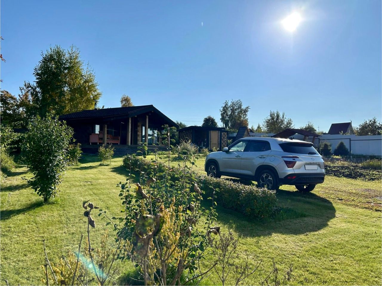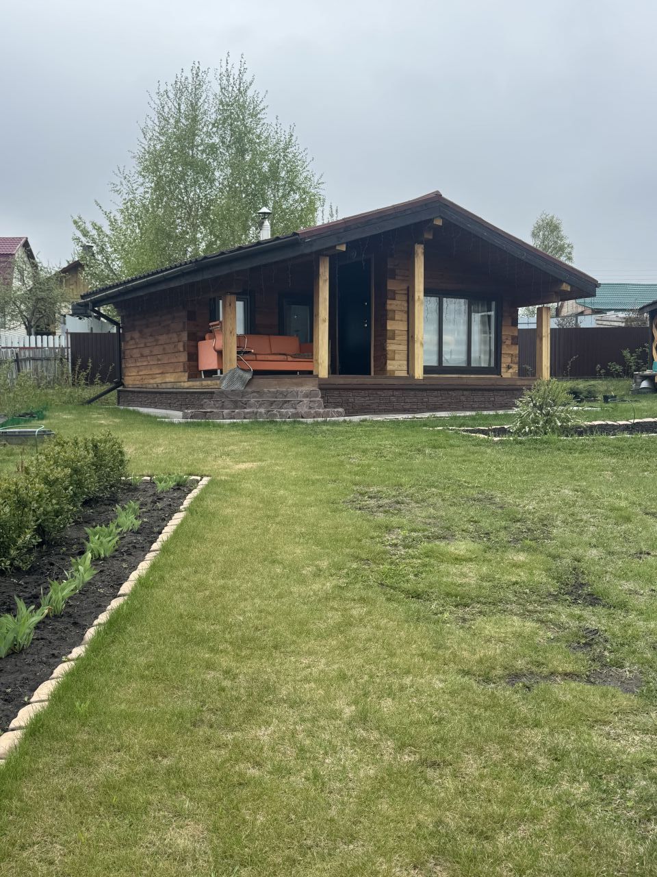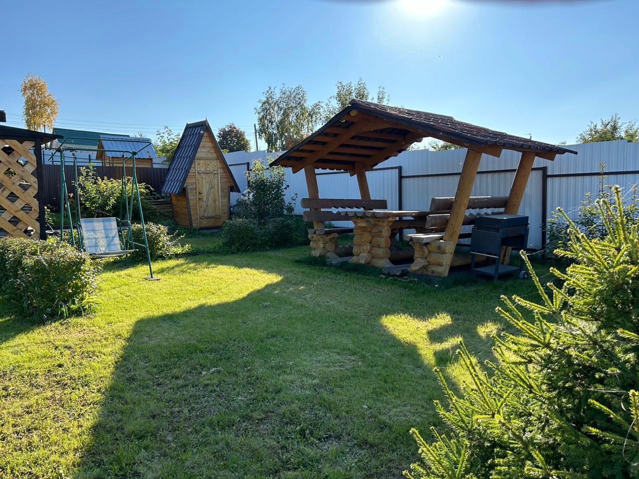 Продам дачу за Солнечным. Ровный ухоженный участок, недалеко от города. 8с/з, огорожен забором. Современный дом с баней, большая беседка из кругляка, мангал, дровенник, теплица из поликарбоната. Электричество проведено, септик, вода, в доме бойлер с душем. Есть небольшие грядочки, из насаждений кустарники, ели. Вся территория засажена газоном. Оставляем всю мебель в доме.