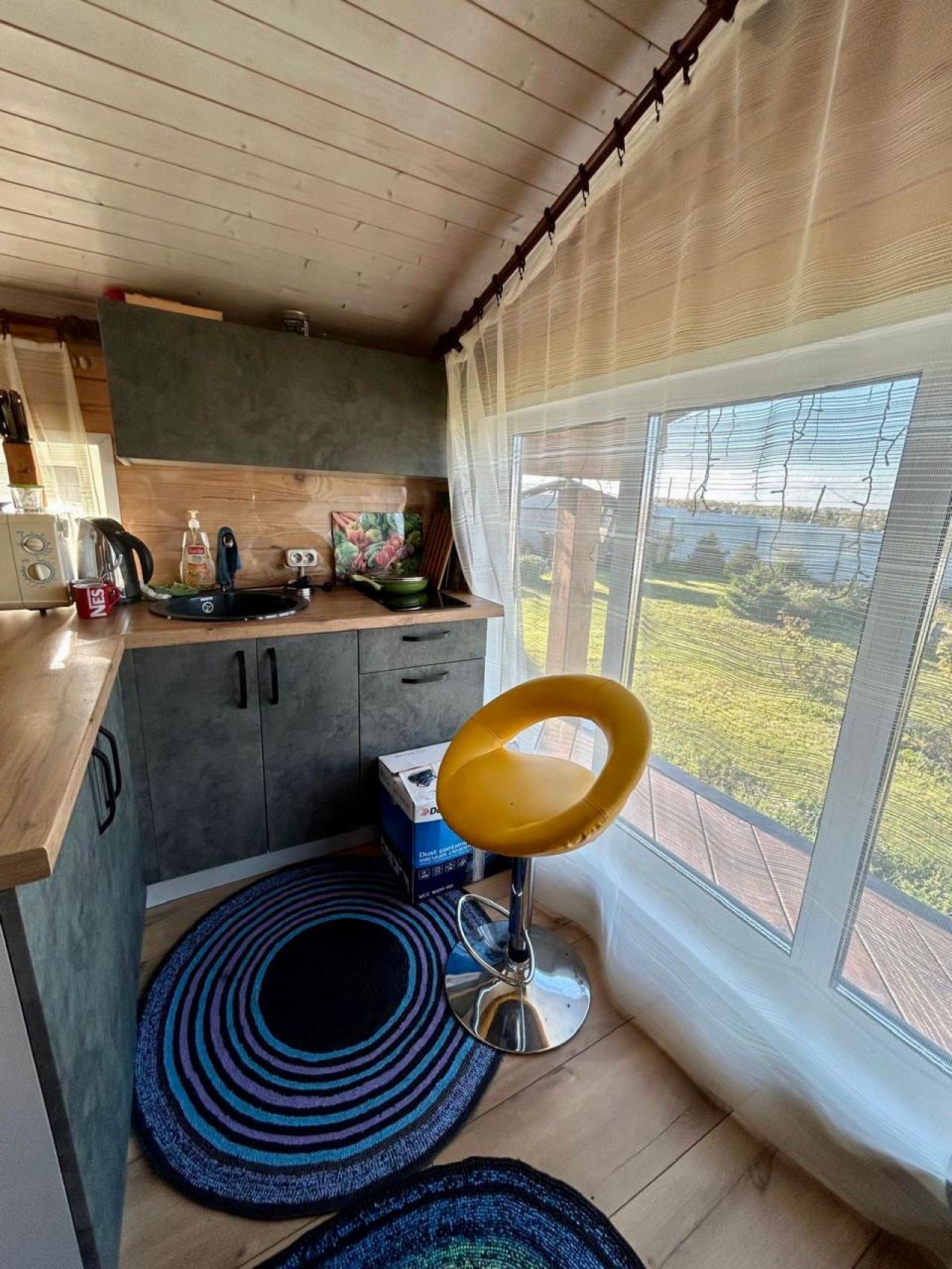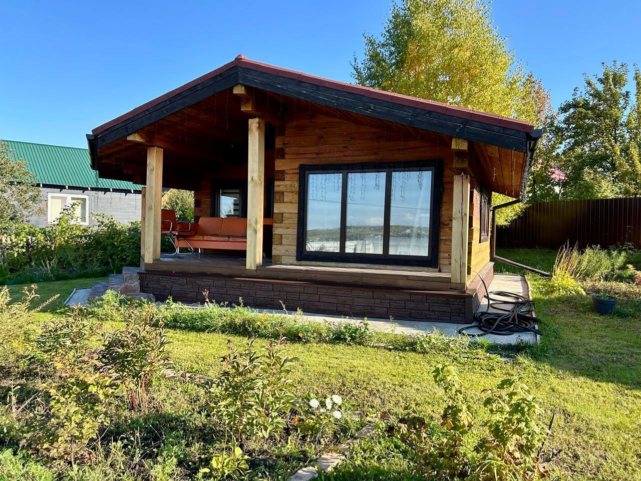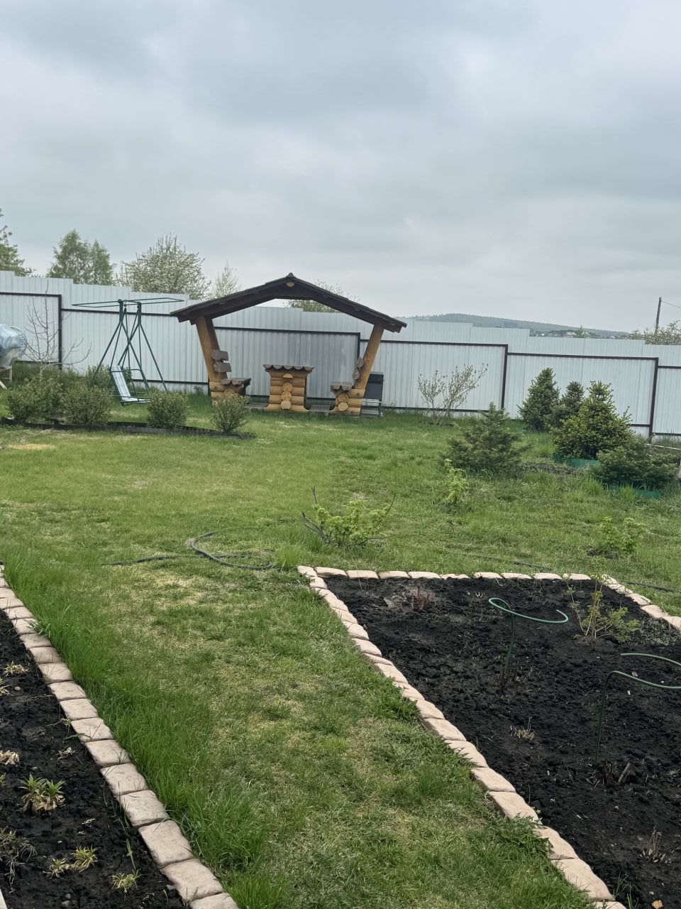 Продам дачу за Солнечным. Ровный ухоженный участок, недалеко от города. 8с/з, огорожен забором. Современный дом с баней, большая беседка из кругляка, мангал, дровенник, теплица из поликарбоната. Электричество проведено, септик, вода, в доме бойлер с душем. Есть небольшие грядочки, из насаждений кустарники, ели. Вся территория засажена газоном. Оставляем всю мебель в доме.