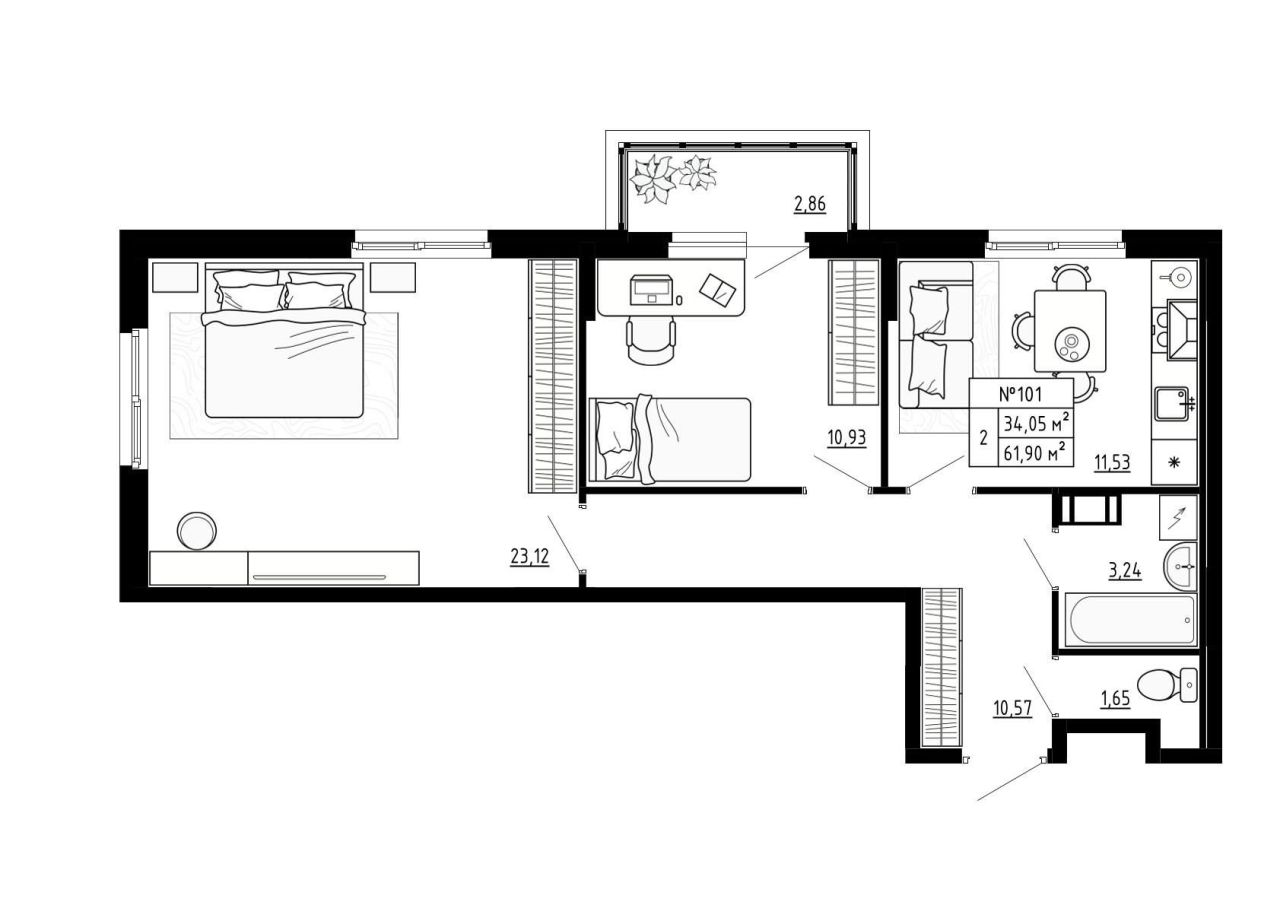 • Площадь объекта 61.9/49.52 м²