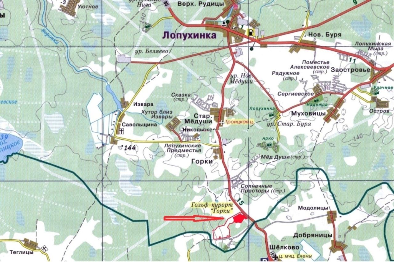18.5 га вдоль лесного массива, рядом с гольф клубом «Горки», 39 км от КАД.
