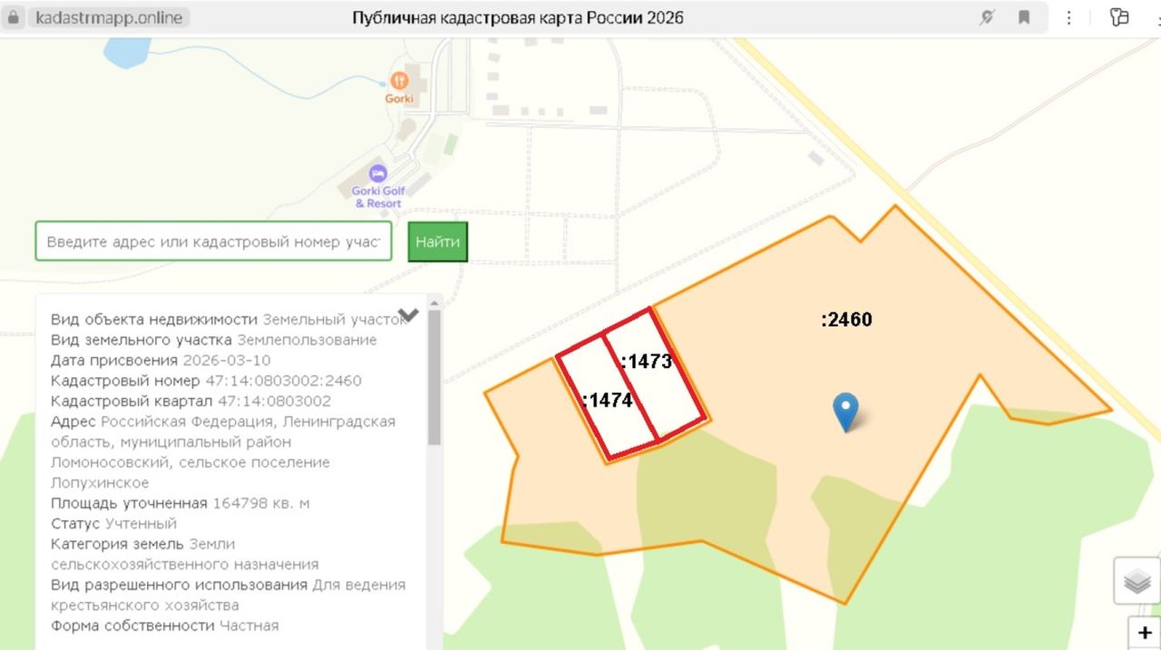Местоположение: Участки расположены в 2-х километрах южнее д. Горки Ломоносовского района, с южной стороны граничат с лесным массивом, с востока граничат с асфальтированной автодорогой «Лопухинка – Каськово», с севера с территорией гольф клуба «Горки» имеющего развитую инфраструктуру спортивно-оздоровительного направления и отдыха (клубный дом с двухэтажным панорамным рестораном, отель с бассейном, спортивный центр и т.д.).