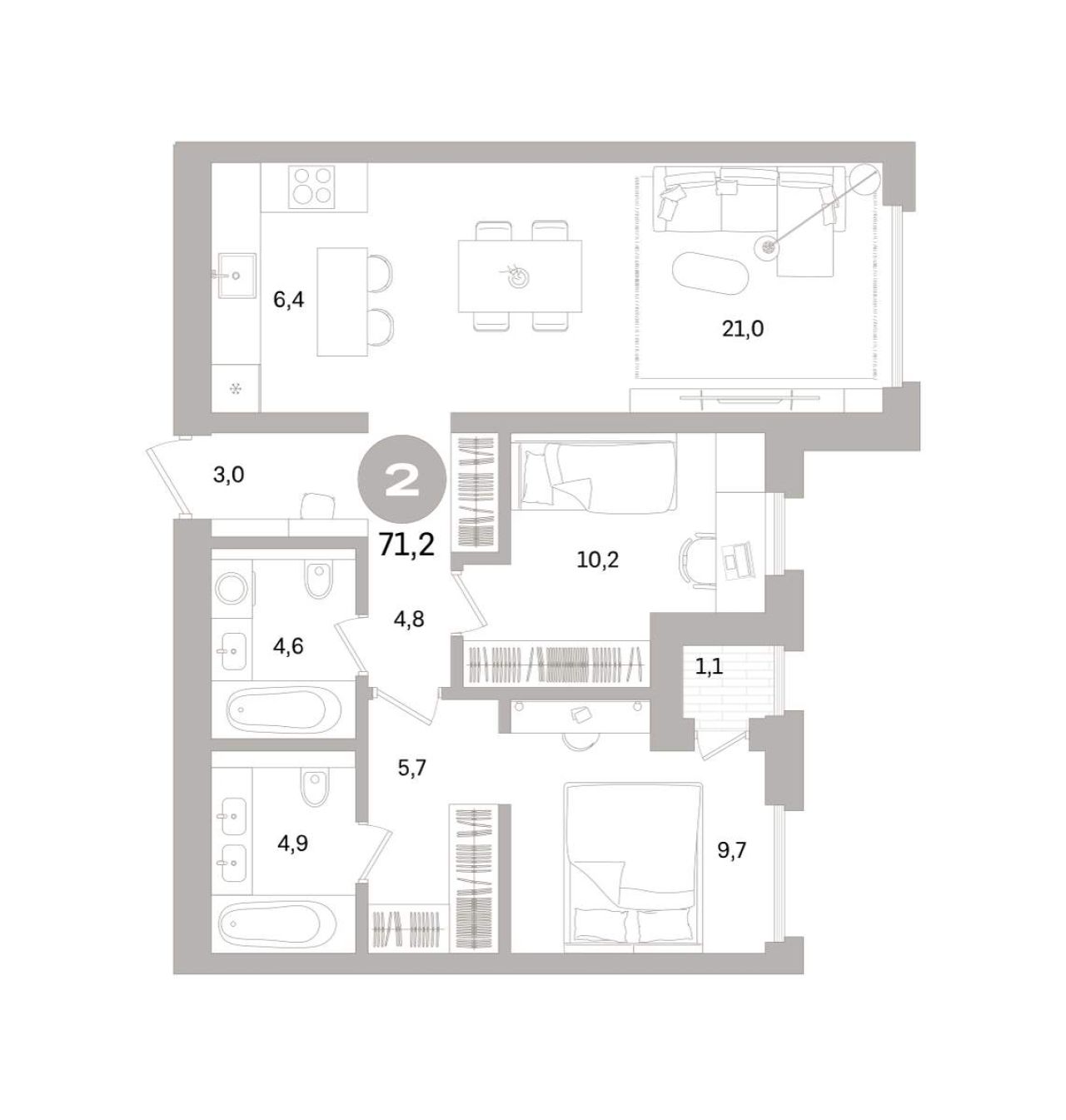 Продается двухкомнатная квартира в ЖК Svеtlаnа Раrк площадью 69.3 м² (жилая площадь – 28.1 м²). Квартира расположена по адресу СПб, муниципальный округ Светлановское, проспект...