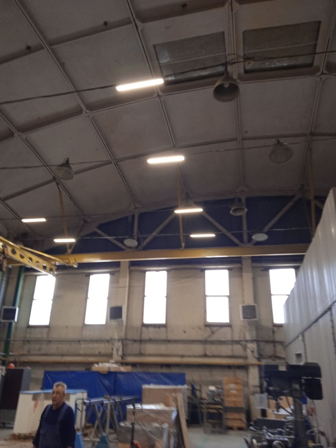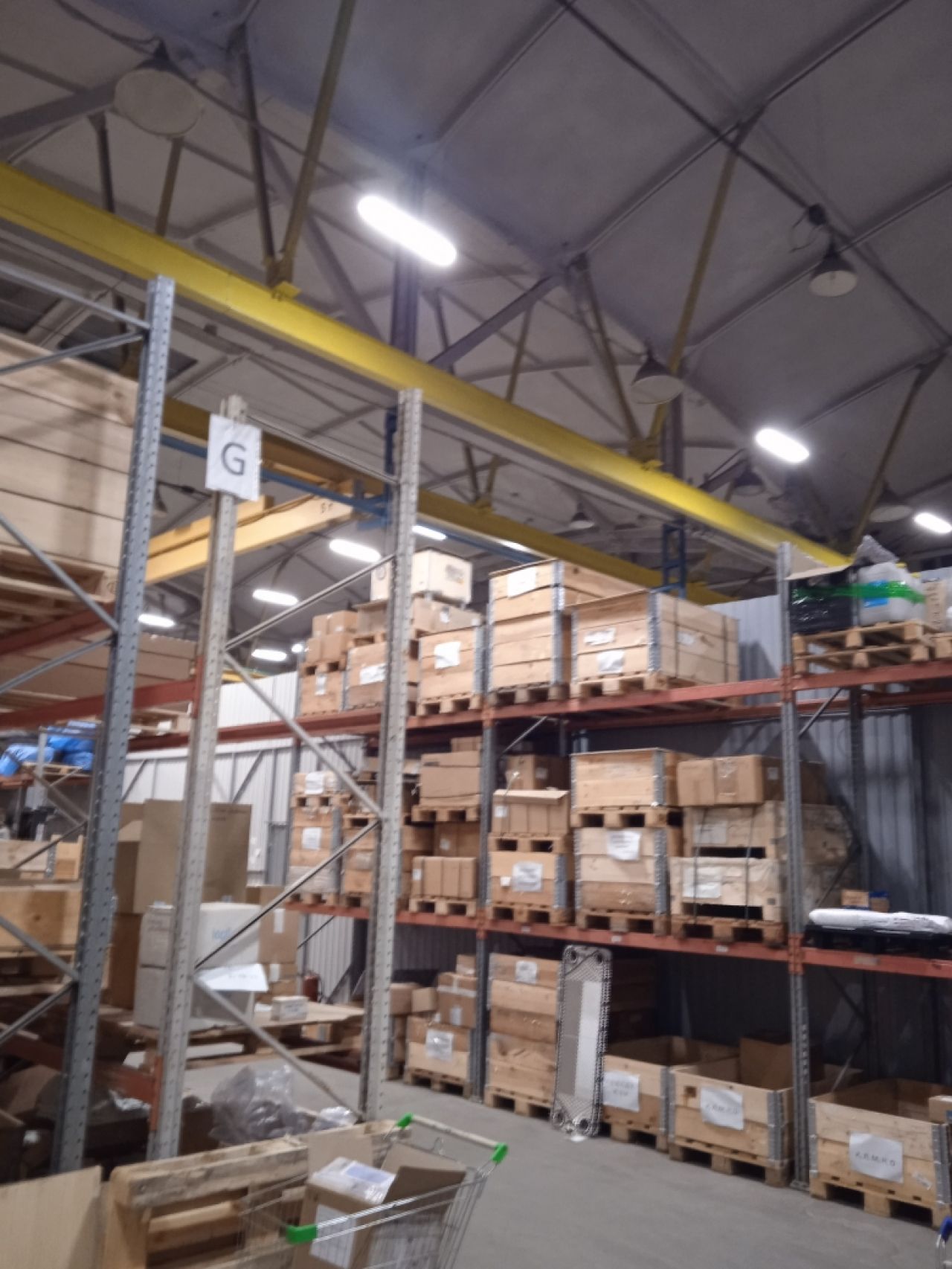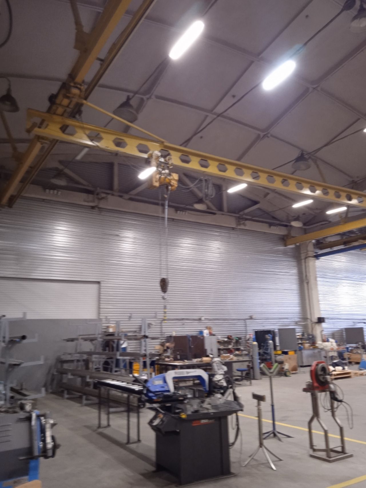 • Производственно-складское, теплое помещение, общей площадью 2850 кв.м. (из них 635 кв.м. административные, подсобные помещения – душ, с/у, раздевалки), шаг колонн 18*24, высота потолков 7-12 метров, автоматические роллерные ворота «HORMANN» с калиткой, под еврофуру размером 4,5 м (высота)*4 м (ширина) – 1 шт, распашные двустворчатые ворота размером 5.5 м – ширина*5,5м высота, тепловые завесы – 4 шт, кран-балки на 2 т. каждая в количестве 4 шт. (расположение кранбалок – поперек помещения, высота подъёма груза – 5 метров). Имеются водопровод, канализация, отопление. Полы выровненные, бетонная стяжка с антипылевым покрытием, нагрузка на пол – 5 тонн/кВ.м.