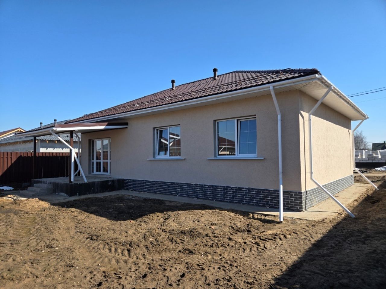 Новый 1-этажный коттедж 118,6 кв. м на участке 6 соток в КП «Новая Дятловка».Ключи – май 2025г. Завершается внешняя отделка фасада.Дом без внутренней отделки. Семейная и IT...
