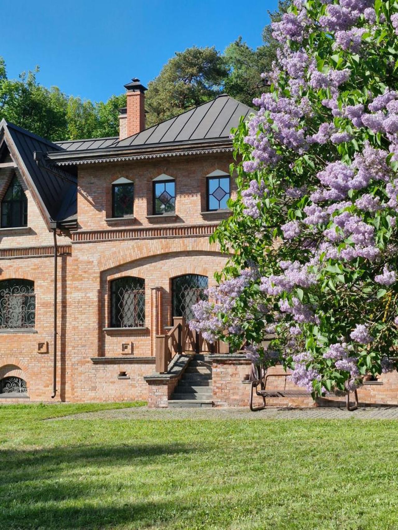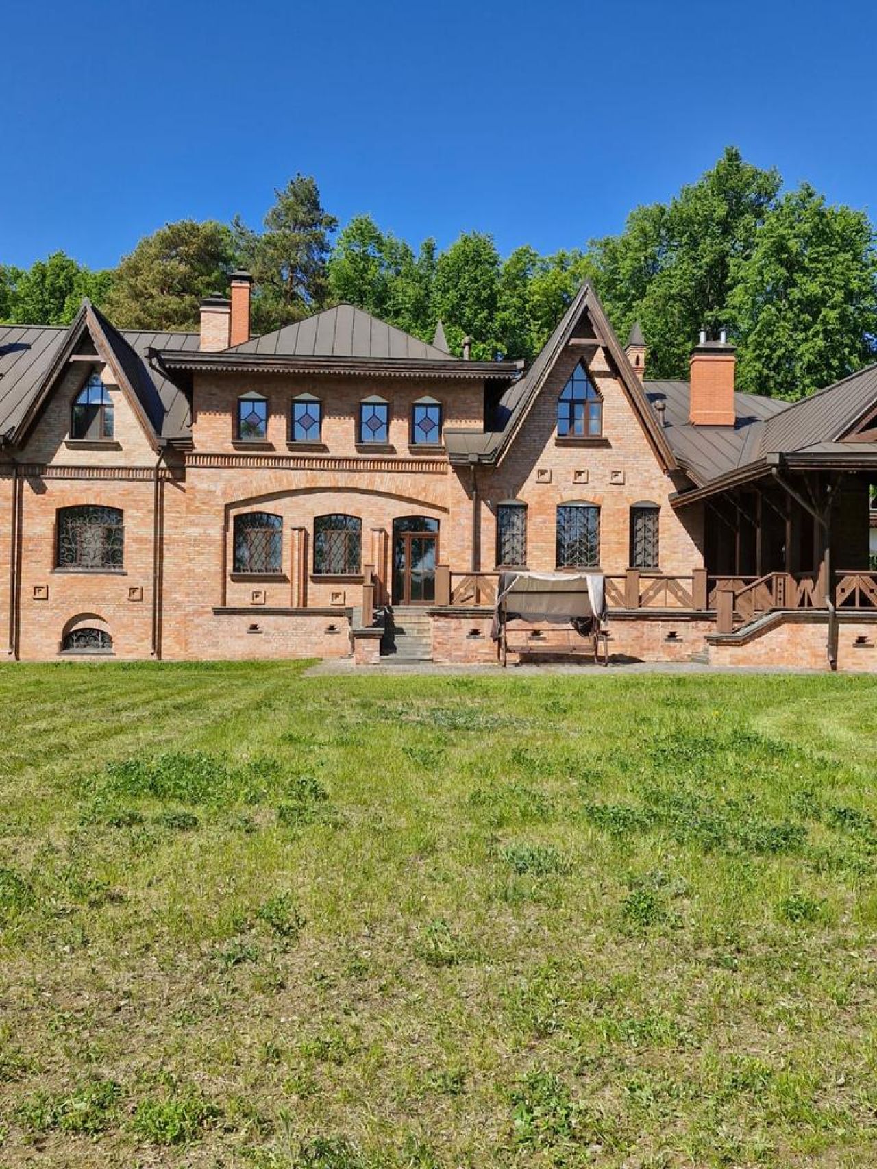 Предлагаем на продажу усадьбу площадью 1100 м2, построенную в неорусском стиле (русский модерн) начала 20-го века. Проект в 2012 году получил специальный приз на крупной архитектурной выставке " Красивые дома" в Крокус Экспо г. Москвы. Планировка дома рассчитана на проживание либо одной большой семьи, либо отдельно 4-х семей (сделано 3 выхода на улицу, что бы никто никому не мешал). При желании усадьбу можно использовать для бизнеса. В доме на 1 и 2 этаже: большая кухня-гостиная с двойным светом и витражами, 3 камина, 12 спален, 3 кладовки, гардеробные комнаты, 7 с/у, кабинет, небольшая библиотека, бильярдный зал (под бильярдный стол в 12 футов), зона отдыха с камином и барной стойкой, балкон с панорамным видом на вековые лесные деревья. В цокольном этаже: бассейн 4х4 метра с массажными форсунками и подсветкой, сауна, душевые, с/у, зона отдыха с кинотеатром, спортивный зал. В котельной в подполе есть небольшой погреб с огромной холодной кладовкой. Открытая и крытая с камином веранды. При входе в дом сделан пандус для инвалидной коляски. Дому требуется небольшой косметический ремонт. Коммуникации: электричество 60 кВт (четыре ввода по 15 кВт), в котельной газовое оборудование установлено фирмы Viessmann. Водопровод - скважина (система очистки Экодар). Канализация - септик с удалением после очистки воды за пределы участка. Оборудование для бассейна фирмы Маркопул. Вся техника установлена качественная, премиальных мировых брендов. Отдельно стоящий теплый гараж на 4 машины, с навесом ещё на 2 машины. На участке выделено отдельное место для фермы (разводили птиц, кроликов) и огорода, построен уличный вольер с выгулом и утепленной будкой для крупной собаки. Участок 70 соток (по факту 1 га), состоящий из 4 смежных участков. Территория огорожена, подключена к охранному агентству. С трех сторон участок не просматривается, с четвертой виден дом вдалеке, при желании можно отгородиться, посадив деревья. Сос