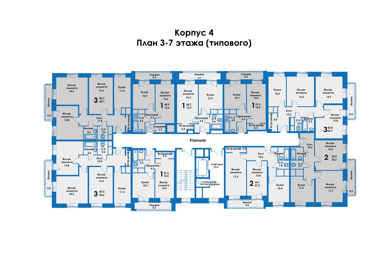 • Площадь объекта 43.7/17.4/13 м²