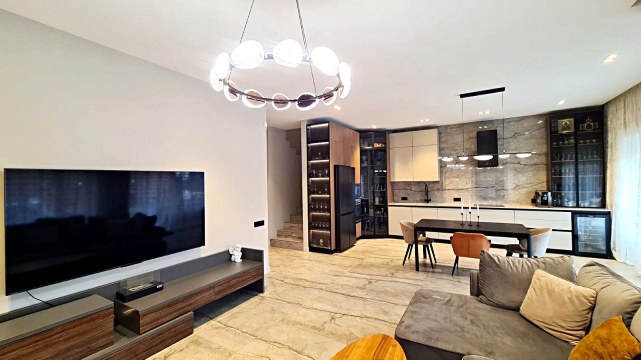 Таунхаус полностью продуман. Европейский внешний и внутренний вид достоин уважения. Два этажа + цокольный этаж. На первом этаже коридор, плавно переходящий в гостиную и большую...
