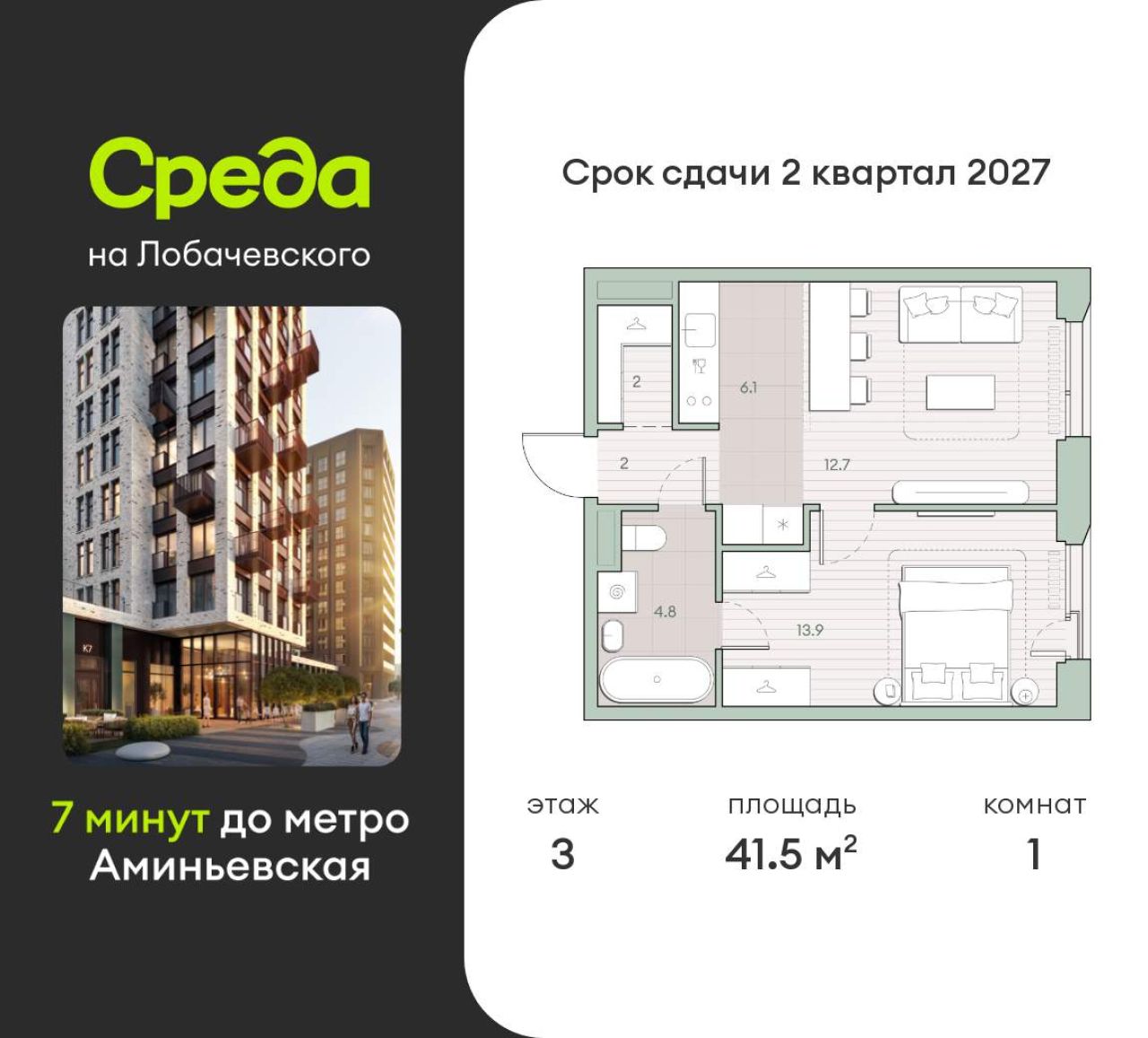 Продается 1-комн. квартира, площадью 42.9 м2 в монолитной новостройке в 12 мин. пешком от м. Аминьевская, район города - Очаково-Матвеевское. Возможен вариант покупки с...