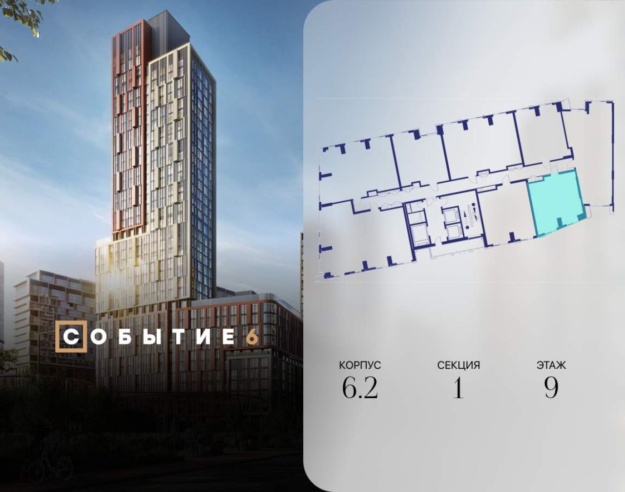 Продаётся 2-комнатная квартира от застройщика: общая площадь 61.90 м, жилая 33.00 м, кухня 17.80 м, 35-й этаж, жилой квартал «Событие-6», корпус 2 (секция 5) Срок сдачи: 1 квартал...