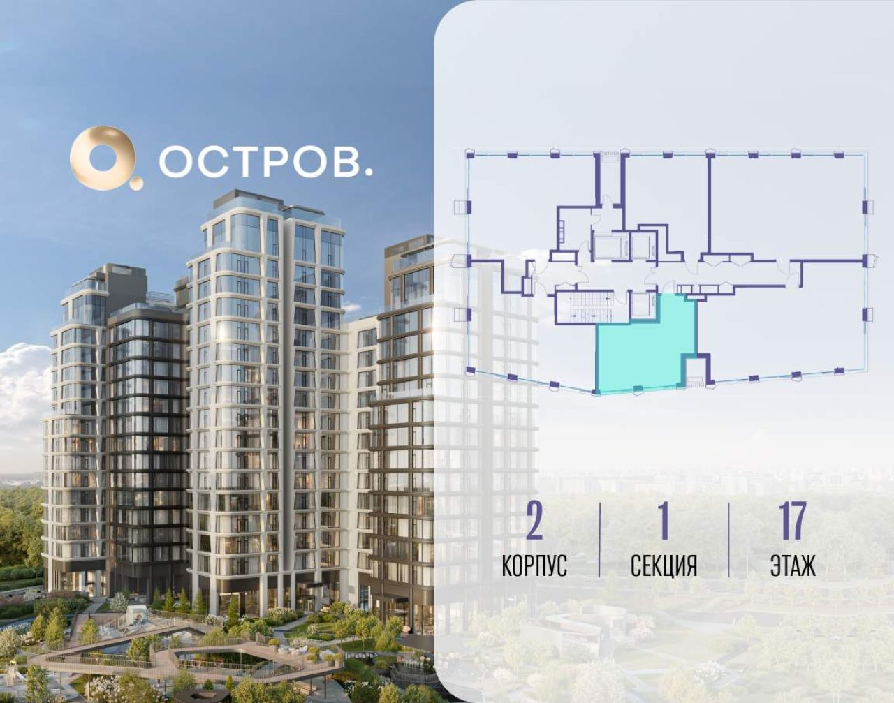 Продаётся 1-комн. квартира от застройщика: общая площадь 44.70 м, жилая 18.50 м, кухня 17.10 м, 14-й этаж, жилой квартал «Остров 12», корпус 1 (секция 2). Срок сдачи: 1 квартал...