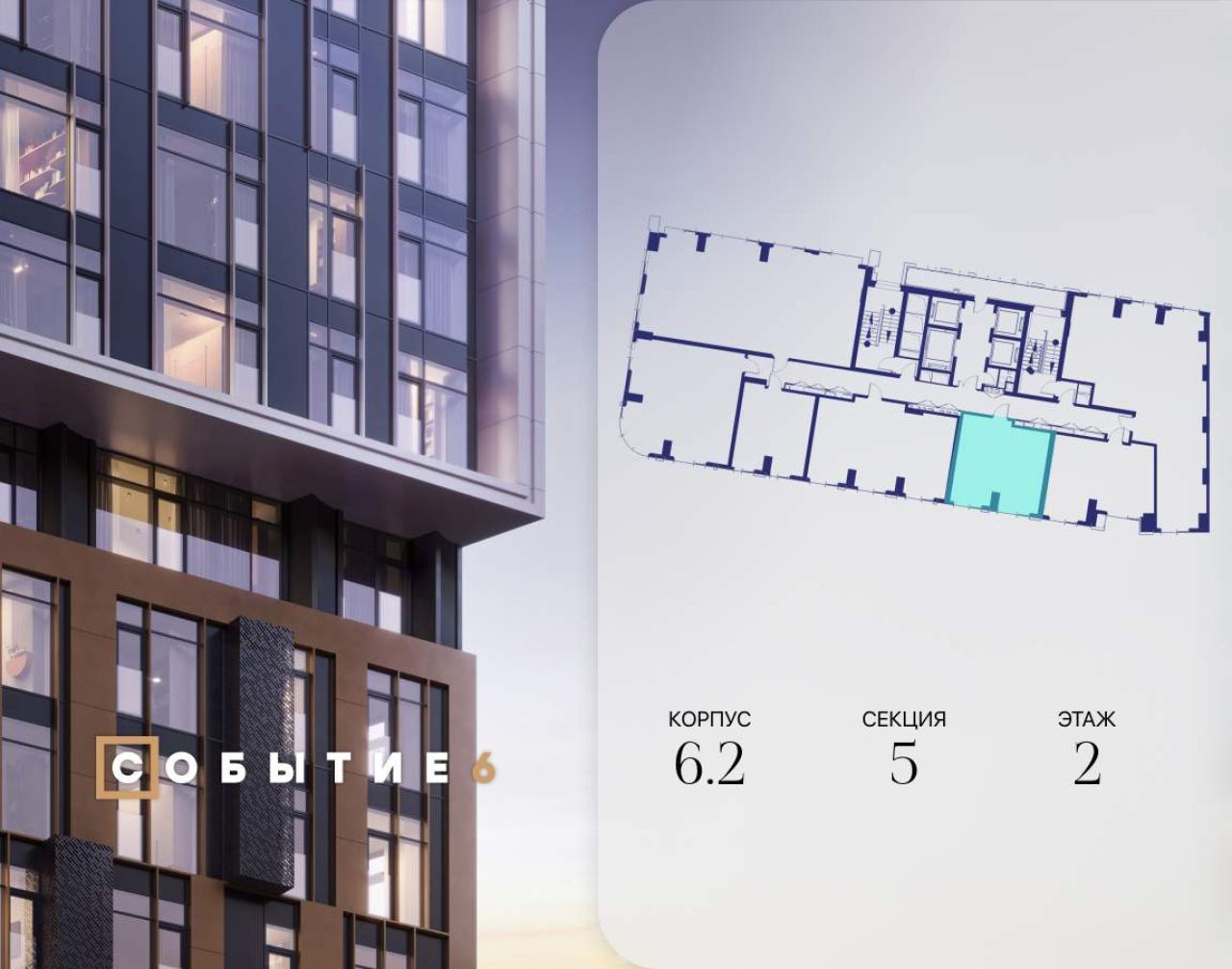 Продаётся квартира-студия от застройщика: общая площадь 33.70 м, жилая 19.80 м, кухня 5.00 м, 5-й этаж, жилой квартал «Событие-6», корпус 2 (секция 2) Срок сдачи: 1 квартал 2029...