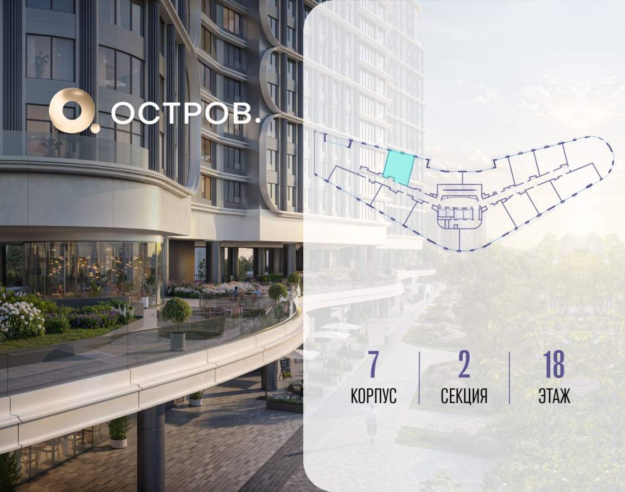 Продаётся 1-комн. квартира от застройщика: общая площадь 50.00 м, жилая 17.50 м, кухня 23.30 м, 19-й этаж, жилой квартал «Остров 7», корпус 7 (секция 2). Срок сдачи: 3 квартал...