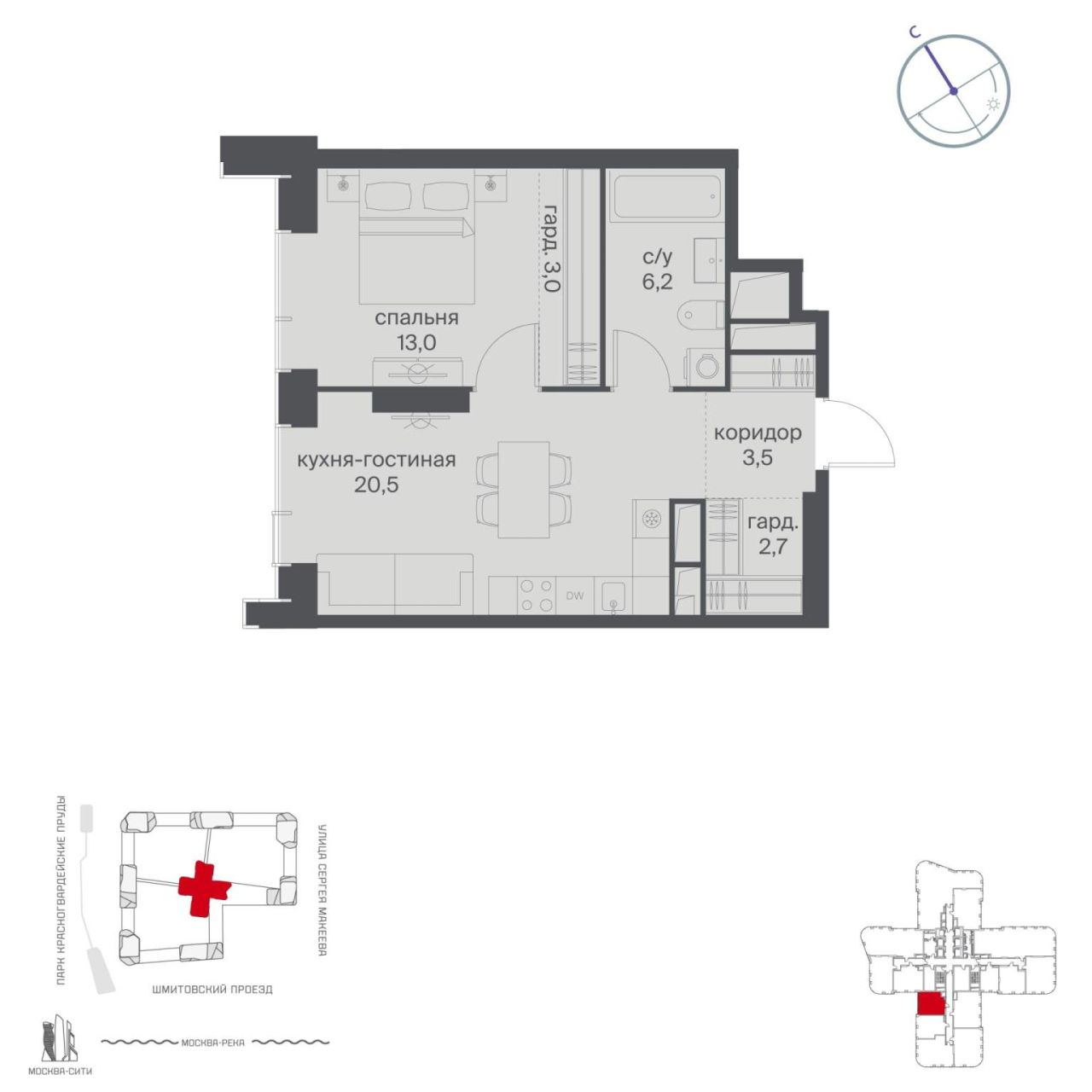 Продается 1-комн. квартира с европланировкой, площадью 57.7 м2 в монолитно-кирпичной новостройке в 19 мин. пешком от м. Улица 1905 года, район города - Пресненский. Возможен...