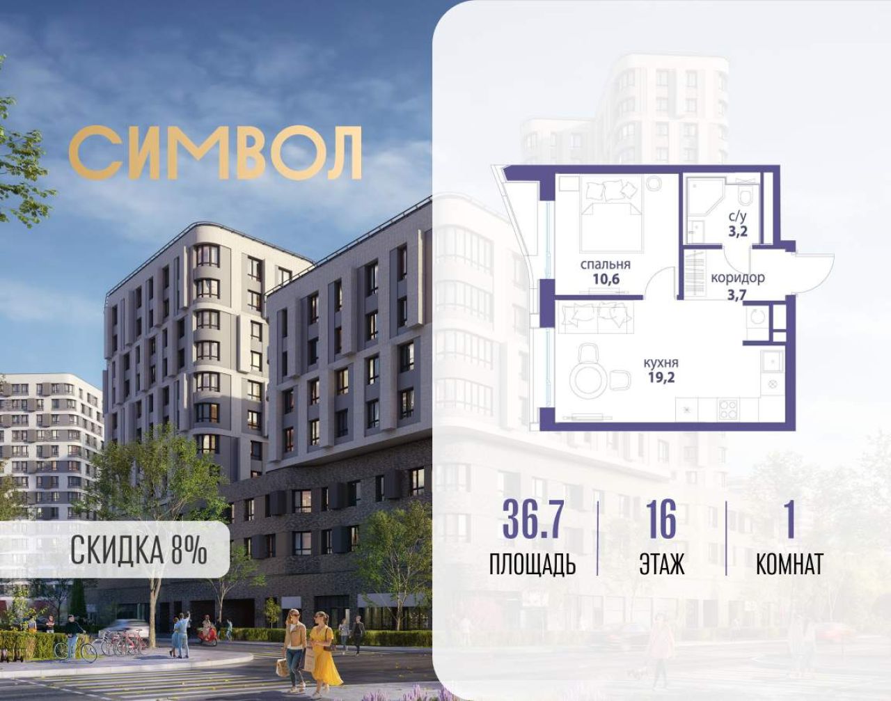 Продается 1-комнатная квартира от застройщика: общая площадь 37.70 м, жилая 12.50 м, кухня 13.40 м, 20-й этаж, жилой квартал «Вдохновение», корпус 32 (секция 1). Срок сдачи: 4...