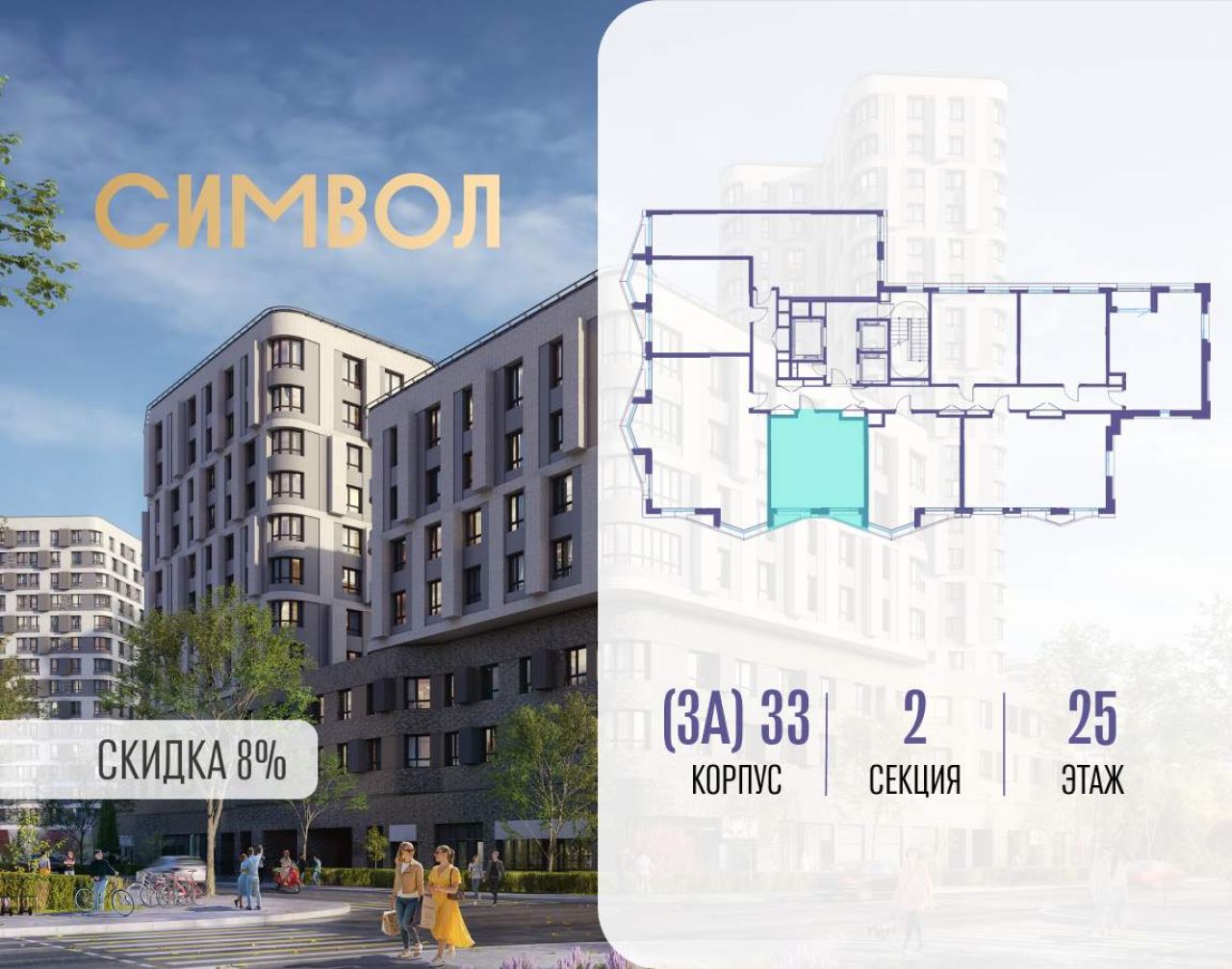 Продается 2-комнатная квартира от застройщика: общая площадь 55.50 м, жилая 25.90 м, кухня 18.30 м, 25-й этаж, жилой квартал «Вдохновение», корпус 33 (секция 3). Срок сдачи: 4...