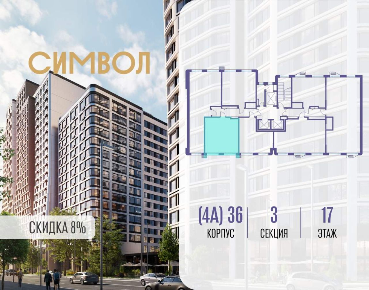 Продается 1-комнатная квартира от застройщика: общая площадь 45.40 м, жилая 17.10 м, кухня 19.30 м, 17-й этаж, жилой квартал «Гордость», корпус 36 (секция 4). Срок сдачи: 2...