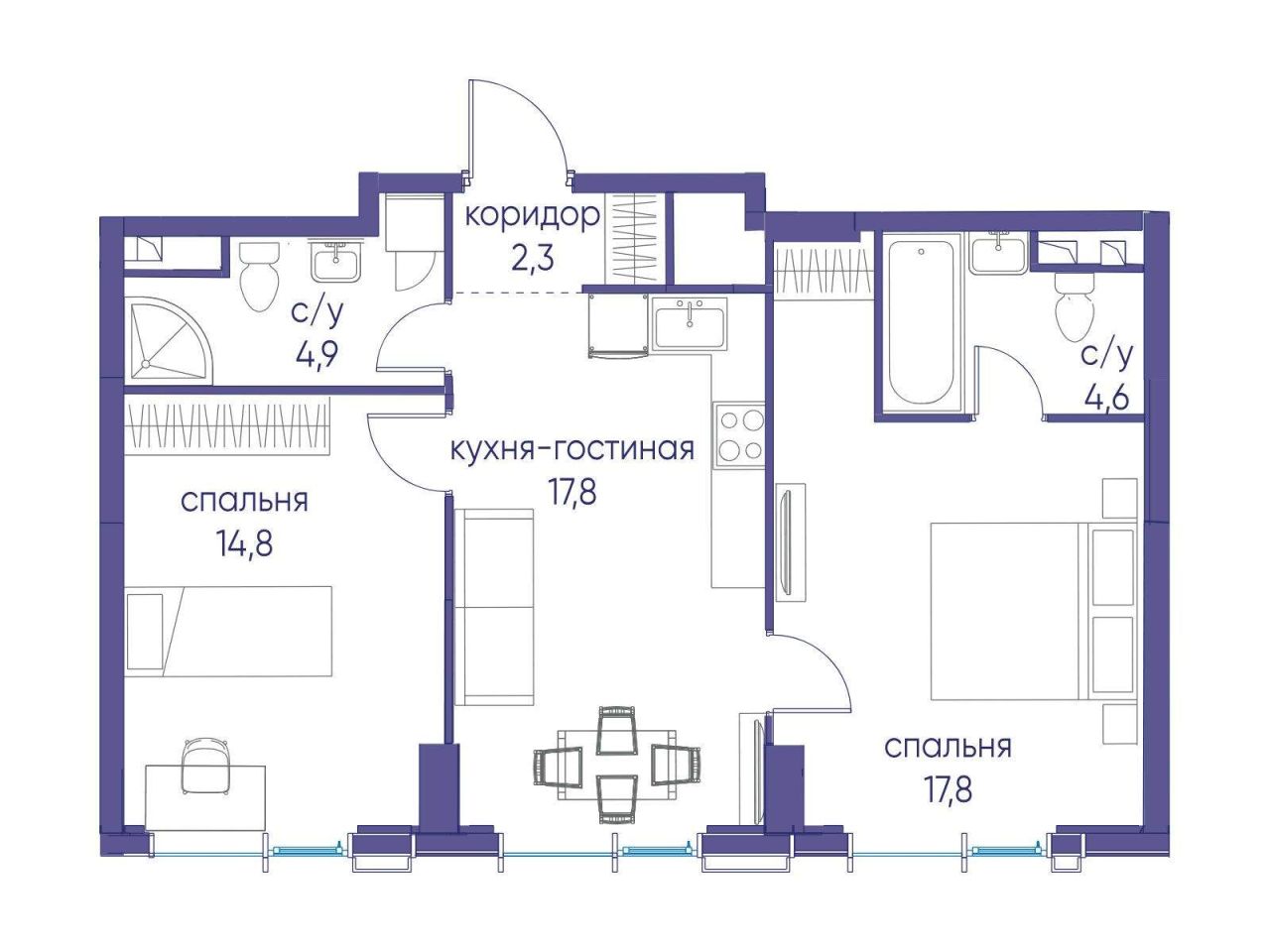 Продается 2-комнатная квартира от застройщика: общая площадь 67.40 м, жилая 24.50 м, кухня 22.70 м, 20-й этаж, жилой квартал «Вдохновение», корпус 32 (секция 1). Срок сдачи: 4...