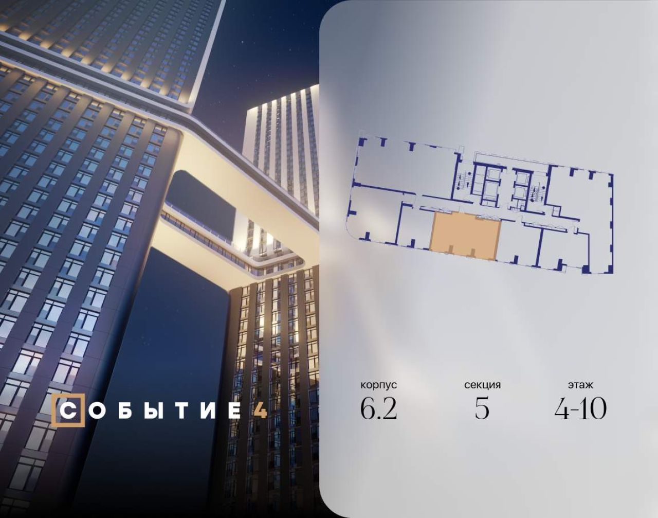 Продаётся 2-комнатная квартира от застройщика: общая площадь 61.50 м, жилая 32.00 м, кухня 17.80 м, 4-й этаж, жилой квартал «Событие-6», корпус 2 (секция 5) Срок сдачи: 1 квартал...