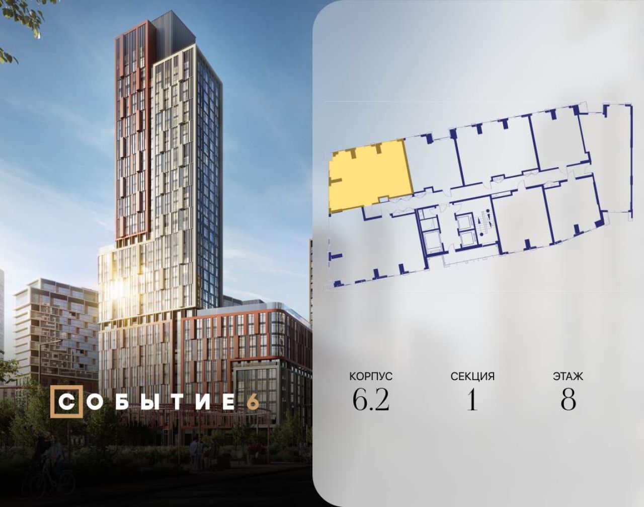 Продаётся 2-комнатная квартира от застройщика: общая площадь 61.90 м, жилая 33.00 м, кухня 17.80 м, 35-й этаж, жилой квартал «Событие-6», корпус 2 (секция 5) Срок сдачи: 1 квартал...