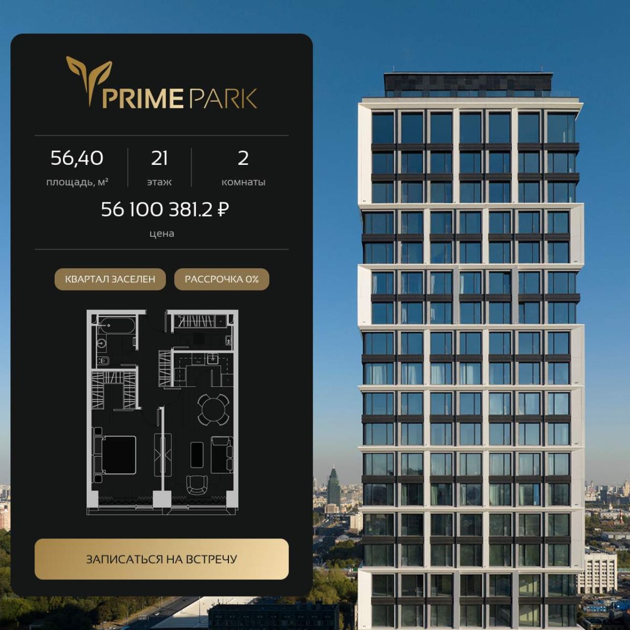 Продаётся 2-комнатная квартира от застройщика: общая площадь 61.90 м, жилая 33.00 м, кухня 17.80 м, 35-й этаж, жилой квартал «Событие-6», корпус 2 (секция 5) Срок сдачи: 1 квартал...