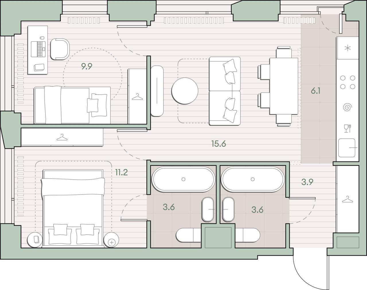 Продается 2-комнатная квартира от застройщика: общая площадь 61.20 м, жилая 31.00 м, кухня 18.10 м, 17-й этаж, жилой квартал «Гордость», корпус 36 (секция 3). Срок сдачи: 2...