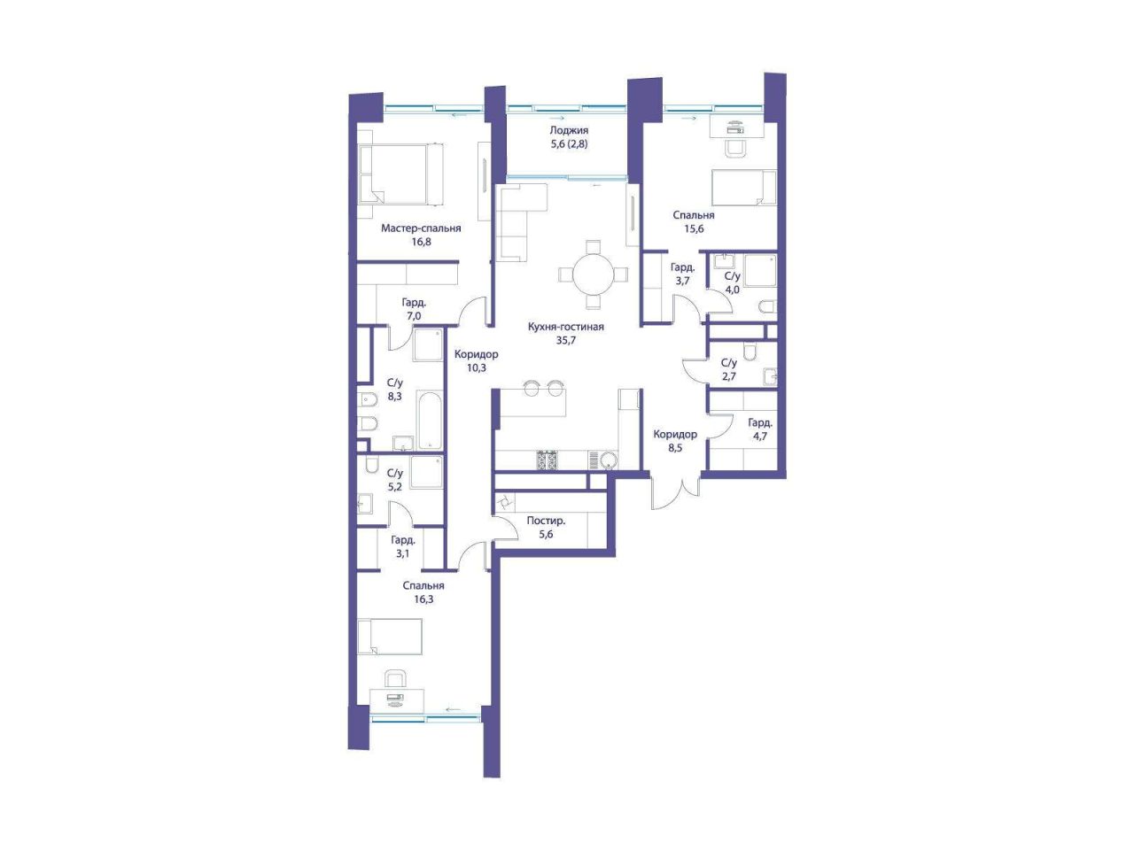 Продается просторная квартира площадью 178.90 м2 в жилом комплексе РЕКА. Квартира находится в 1 секции корпуса 3 (будет введен в эксплуатацию в 4 кв. 2026). Этаж 9-й из 16. В...
