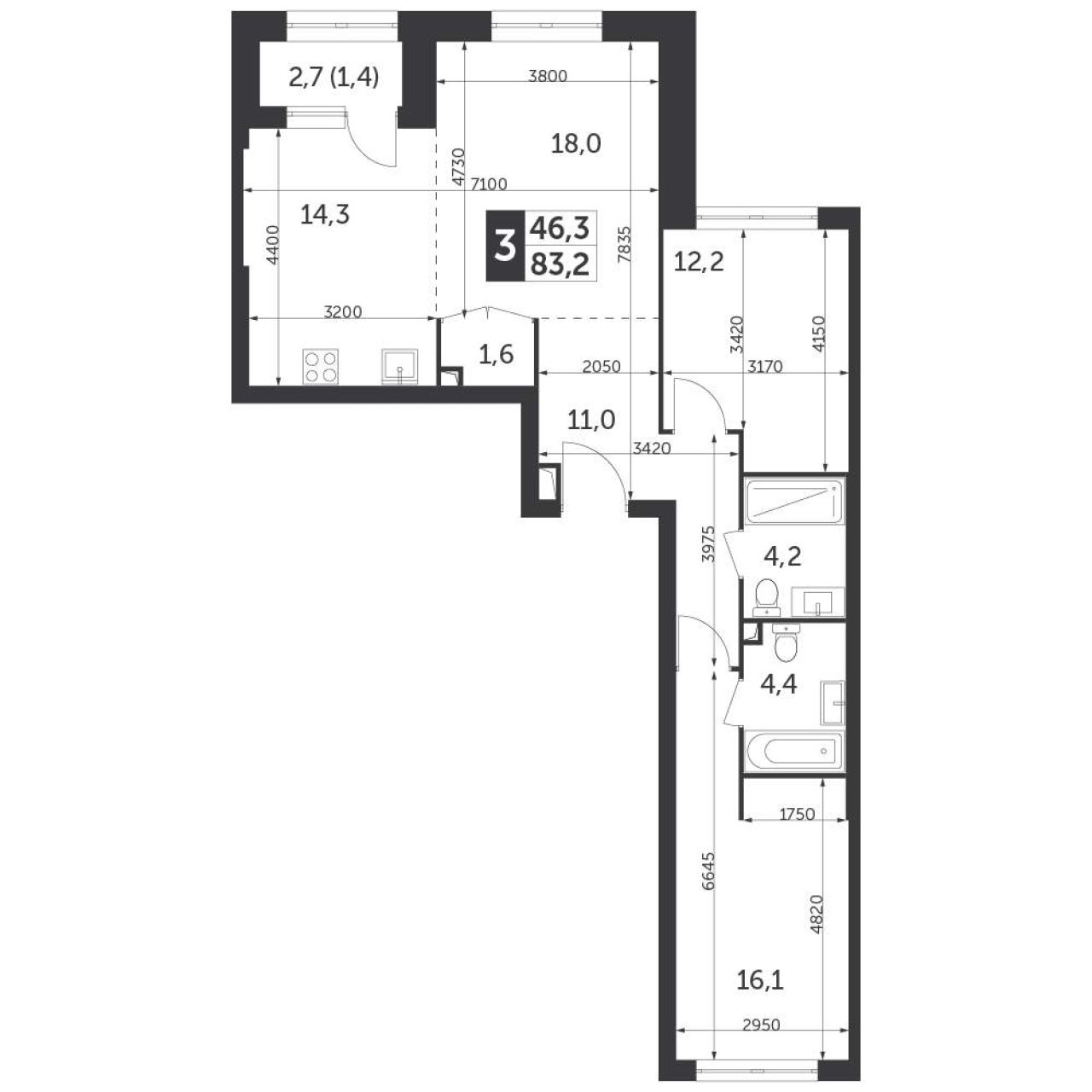 Продается 3-комн. квартира, площадью 77.3 м2. Жилая площадь 43.1 кв. м, кухня 12 кв. м, ремонта нет, окна выходят на улицу. Квартира располагается на 14 этаже 28-этажного...