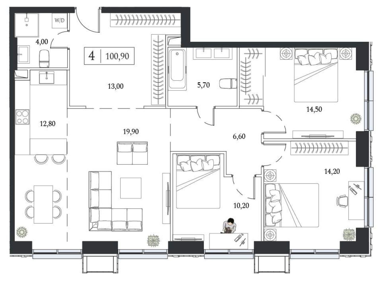 Старт продаж квартир в ЖК бизнес+ класса от девелопера STONEВ продаже функциональная и светлая трехспальная квартира с кухней-гостиной и тремя спальнями для реализации любого...