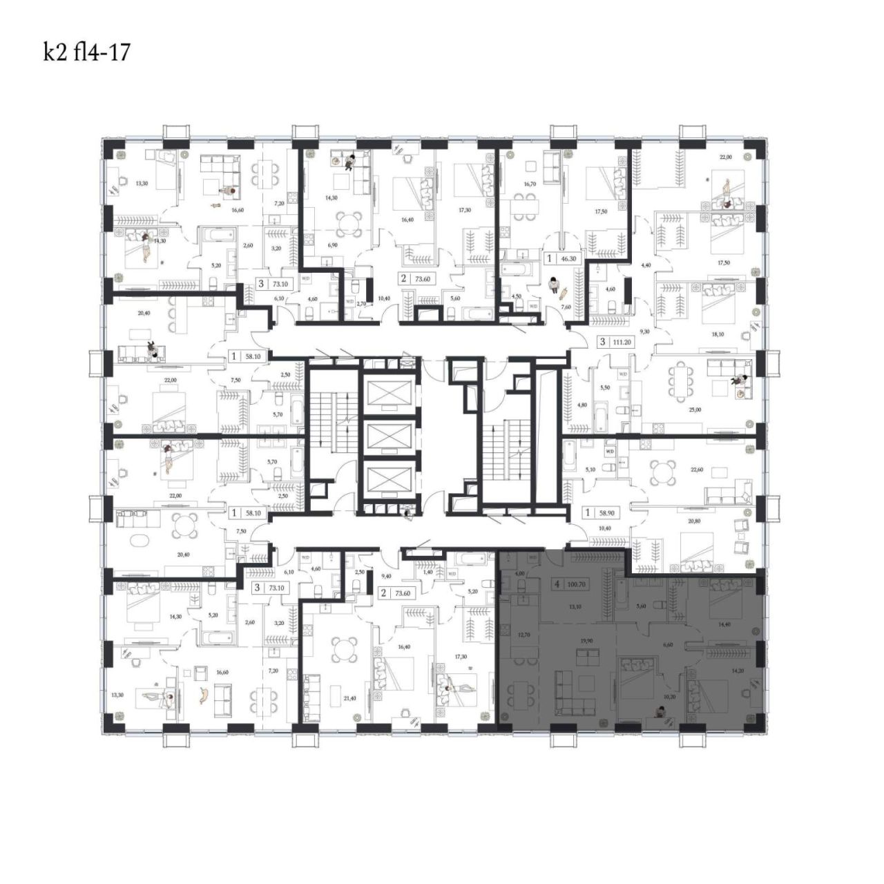 Продается 3-комнатная квартира от застройщика: общая площадь 94.10 м, жилая 44.60 м, кухня 18.70 м, 14-й этаж, жилой квартал «Вдохновение», корпус 32 (секция 1). Срок сдачи: 4...