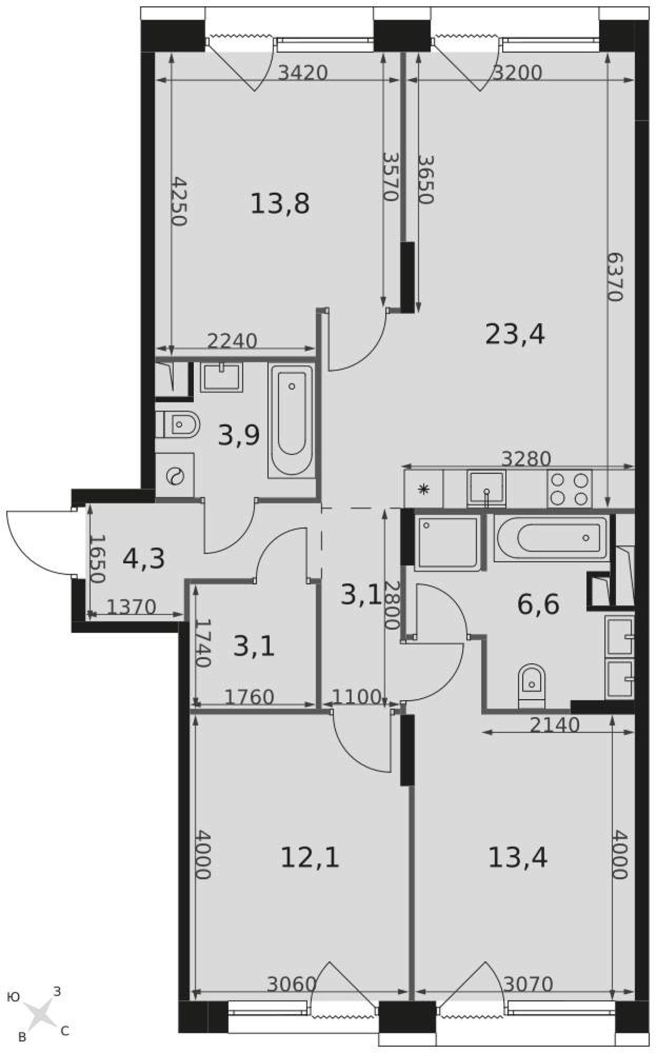Продается 3-комнатная квартира от застройщика: общая площадь 94.10 м, жилая 44.60 м, кухня 18.70 м, 14-й этаж, жилой квартал «Вдохновение», корпус 32 (секция 1). Срок сдачи: 4...