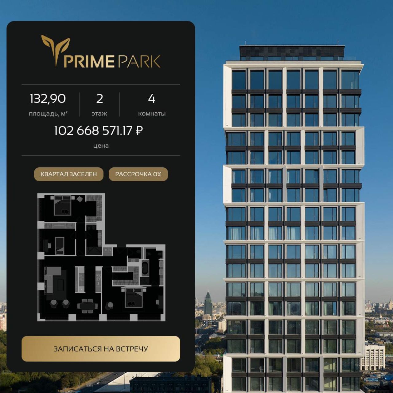 Продается 4-комн. квартира, площадью 129 м2 в монолитной новостройке в 12 мин. пешком от м. Динамо, район города - Хорошевский. Возможен вариант покупки с использованием ипотечных...