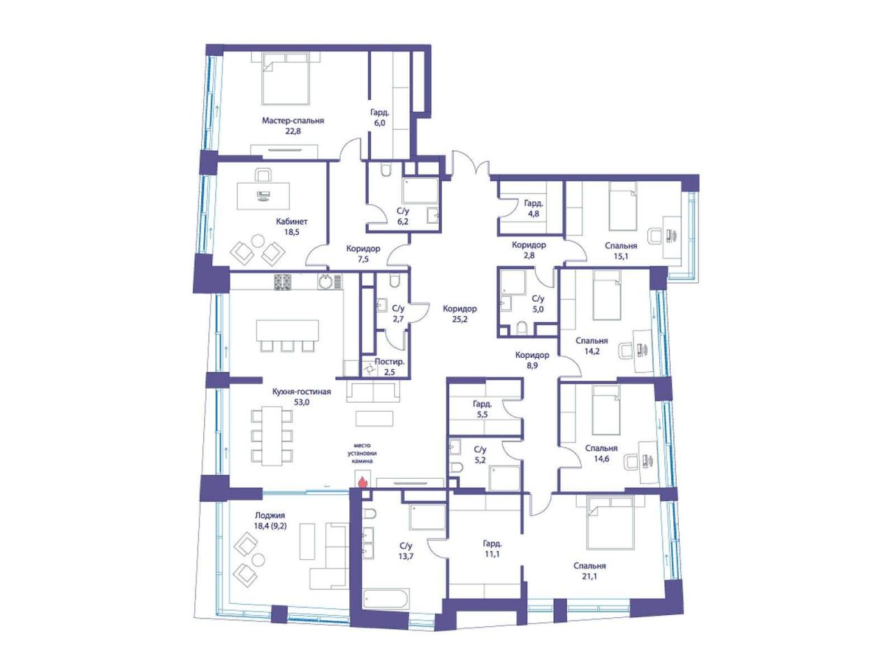 Продается просторная квартира площадью 218.60 м2 в жилом комплексе РЕКА. Квартира находится в 1 секции корпуса 3 (будет введен в эксплуатацию в 4 кв. 2026). Этаж 6-й из 16. В...