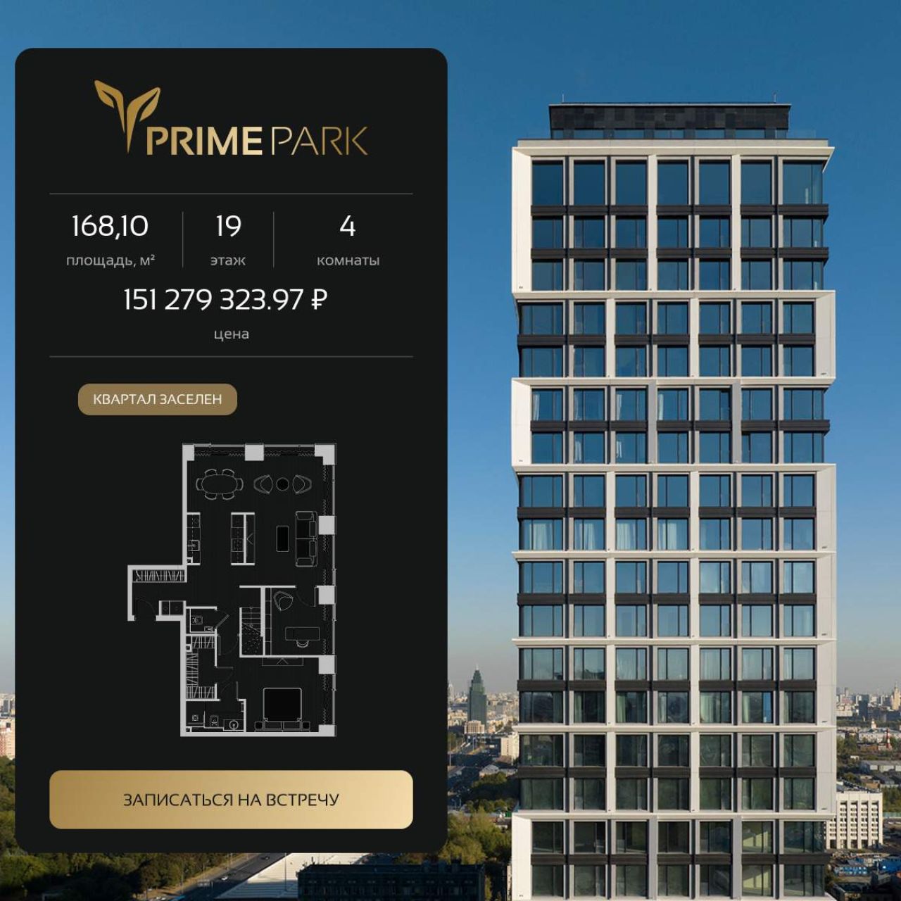 Продается просторная квартира площадью 155.20 м2 в жилом комплексе РЕКА. Квартира находится в 4 секции корпуса 3 (будет введен в эксплуатацию в 4 кв. 2026). Этаж 8-й из 14. В...