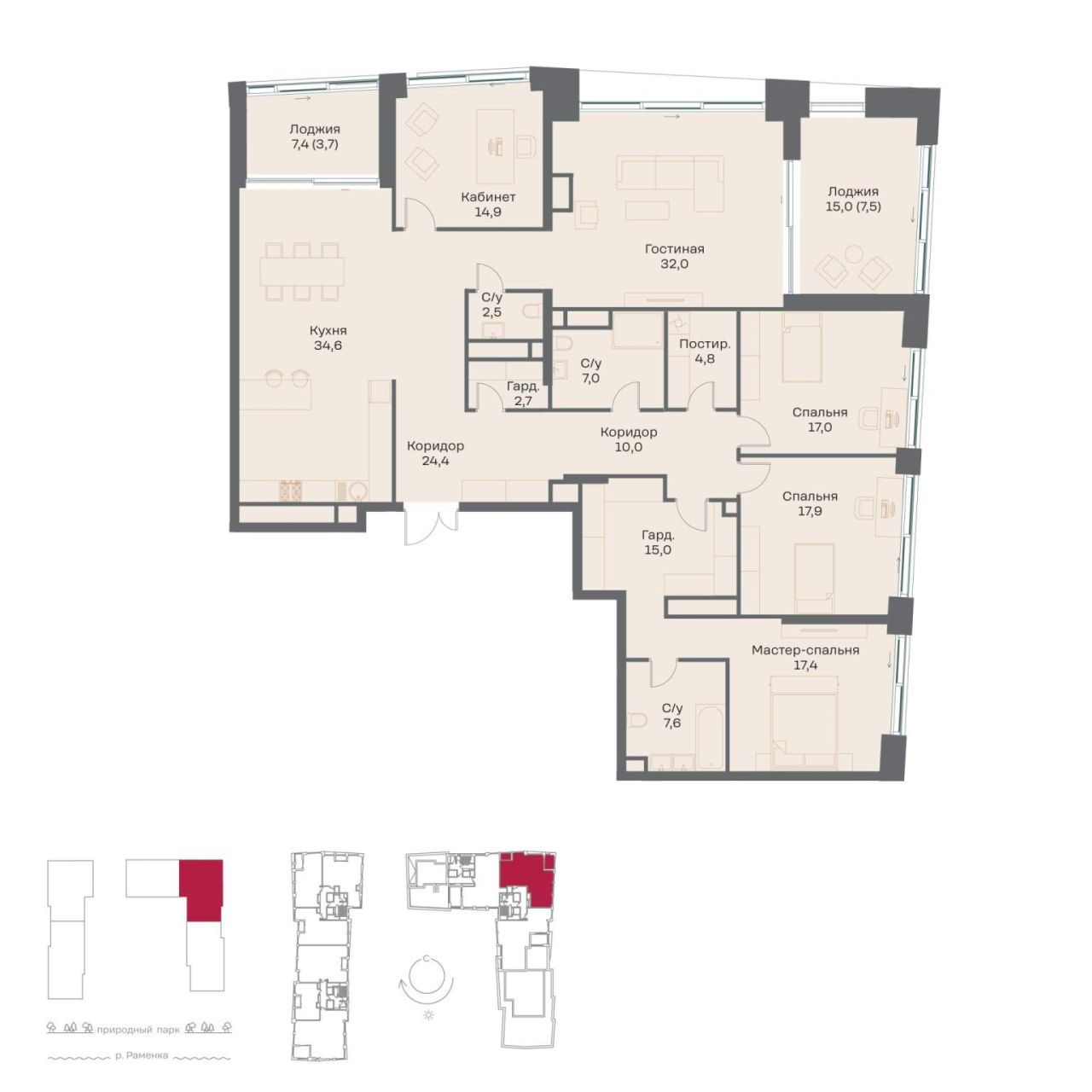 Продается просторная квартира площадью 219.00 м2 в жилом комплексе РЕКА. Квартира находится в 4 секции корпуса 3 (будет введен в эксплуатацию в 4 кв. 2026). Этаж 12-й из 14. В...