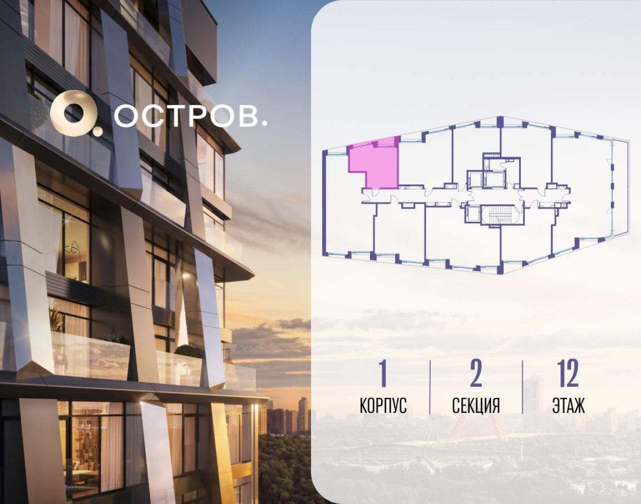 Продаётся 1-комн. квартира от застройщика: общая площадь 47.40 м, жилая 14.40 м, кухня 21.60 м, 10-й этаж, жилой квартал «Остров 12», корпус 1 (секция 1). Срок сдачи: 1 квартал...