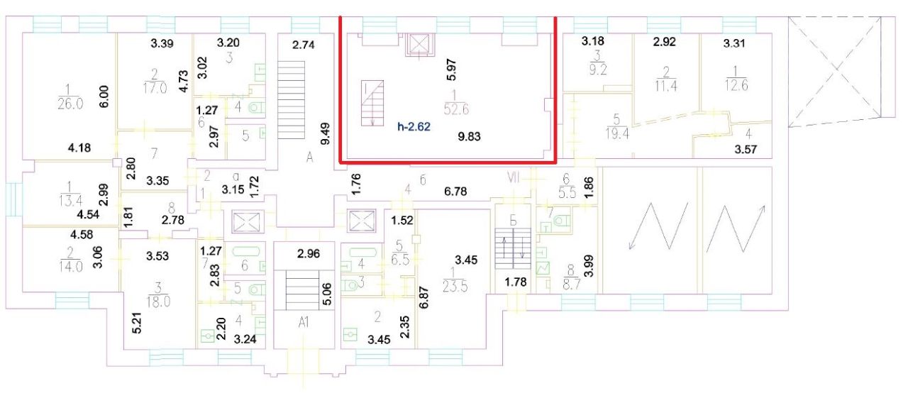 Высота потолков 2.6 м. Требуется ремонт.