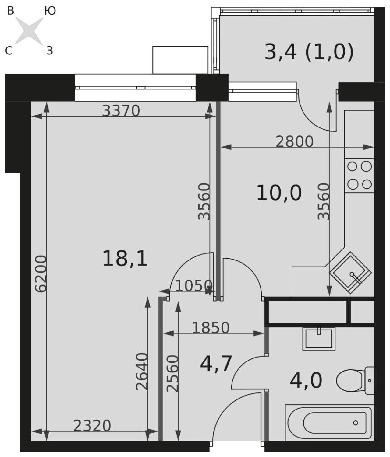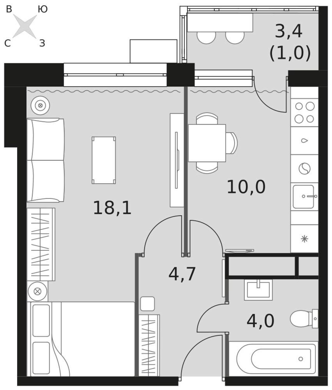 Срочная продажа от собственника! Без наценки на комиссию агентов! Продается 1 комнатная квартира, ЖК бизнес-класса Ньютон . Общая площадь 43,3 кв.м. Площадь кухни гостиной 10,3...