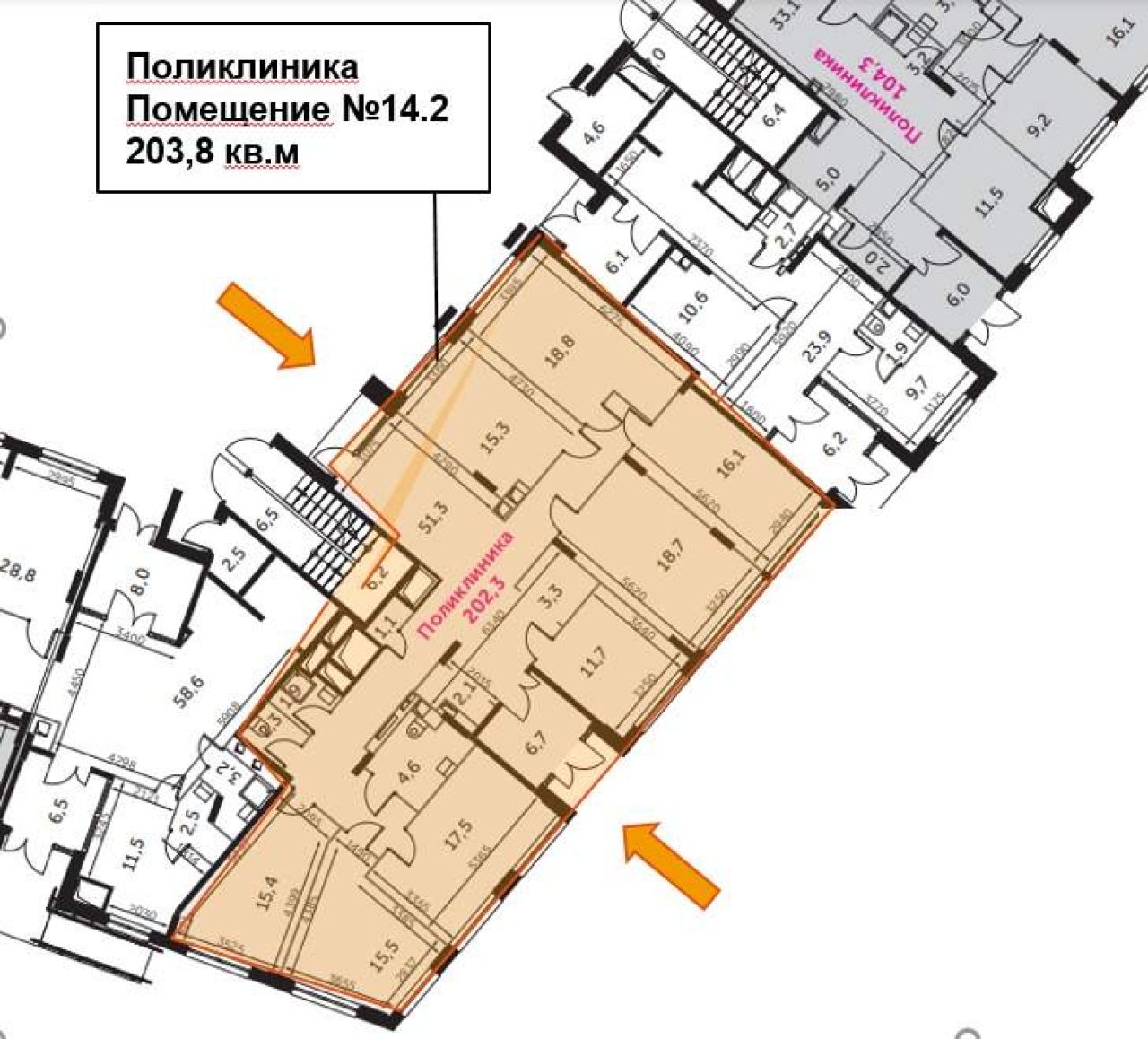 Продается помещение под МЕДЦЕНТР от ЗАСТРОЙЩИКА! Площадь от 104,8 кв. м до 308,6 м2, корпус 2, первый этаж, 1 вход с улицы, 1 вход со двора. Центральное местоположение, рядом с...