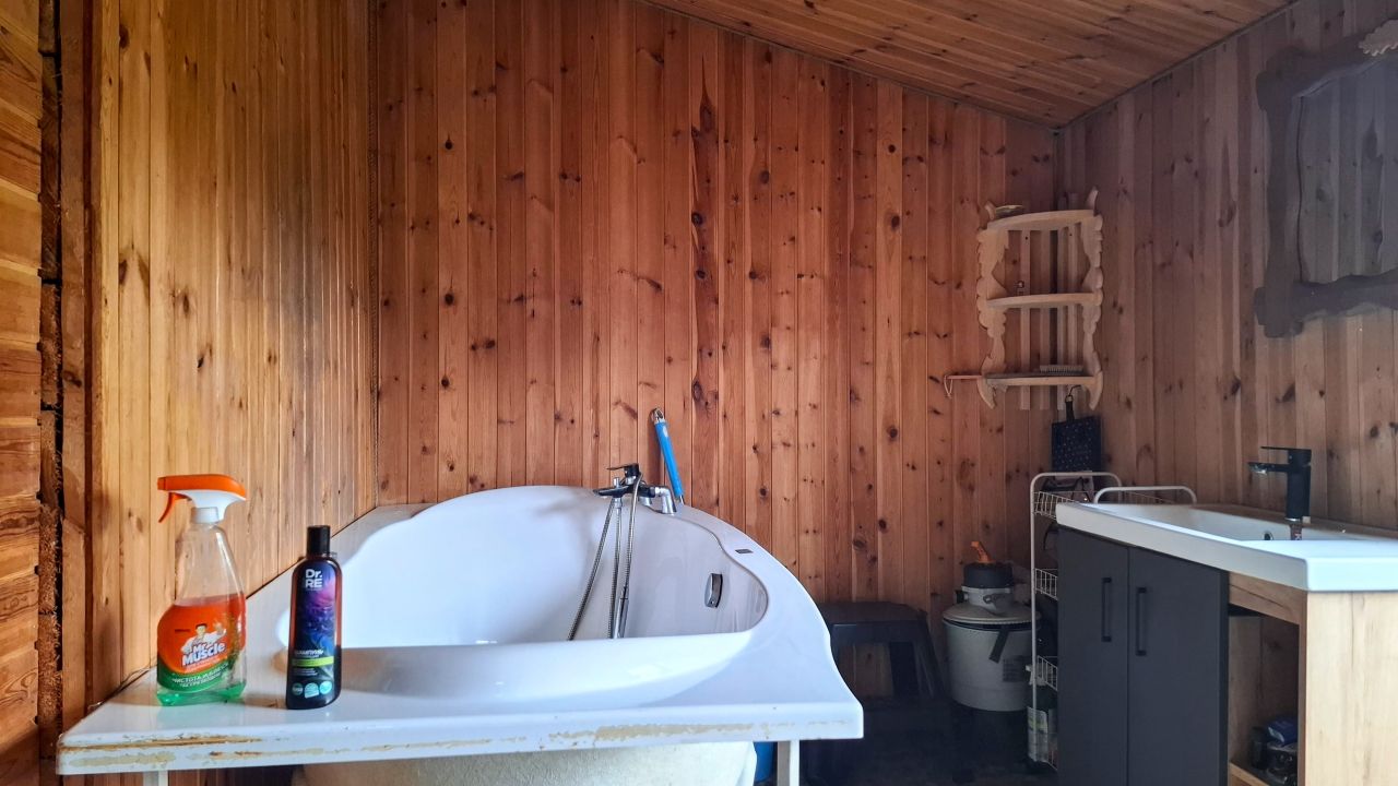 ОТДЕЛЬНО СТОЯЩИЙ ДОМ СО ВСЕМИ УДОБСТВАМИ РЯДОМ С РЕКОЙ ВЕЛИКОЙ, В 5-ТИ КМ. ОТ Г. ОСТРОВ В ПСКОВСКОЙ ОБЛАСТИ. К продаже предлагается утепленный реконструированный дом из бруса 55 кв.м. общей площадью, со всеми удобствами и сауной на крепком бетонном фундаменте, крайне уютно и выгодно расположенный на самой окраине деревни Трошихино Островского района, всего в пяти км. от г.Остров Псковской области в сторону границы с Латвией. В доме одна большая просторная комната около 30-ти кв.м., отделанная деревом кухня, прихожая, сауна, ванная- джакузи и туалет, холодная и горячая вода в доме, водопровод из скважины, канализация - септик, теплые полы на кухне и в туалете с ванной, отопление эффективная печь, плюс котел на твердом топливе, повсеместно установлены пластиковые стеклопакеты, под домом подпол, есть прекрасная возможность обустройства второго этажа. Остается мебель и кое что из бытовой техники. На участке 19 соток земли поселений есть сад, гараж и сарай, имеется возможность держать скотину, участок возможно расширить до площади более 1 Га. Сразу перед домом пруд с рыбой, в 100-та метрах от участка протекает небольшая речушка, в 250-ти река Великая, пригодная для купания. Рядом лес, полно грибов и ягод. Тихая и достаточно уютная окраина совсем небольшой деревушки, рядом с одним из районных центров Псковщины прекрасно подходит для постоянного проживания в уединении, почти как на полноценном хуторе, но в то же время и со всей необходимой городской инфраструктурой под рукой, до города пешком 15 минут по кратчайшей дороге, хороший круглогодичный подъезд, отличная связь и интернет. Продажа дома связана с переездом, стоимость более чем адекватная, документы на дом и на землю в порядке, сделано межевание, продается без торга. В продаже имеются дома хуторного типа.