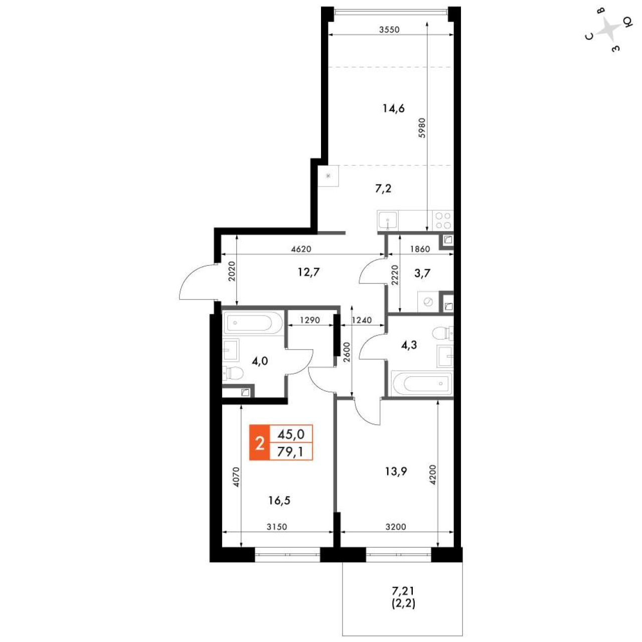 45 м²