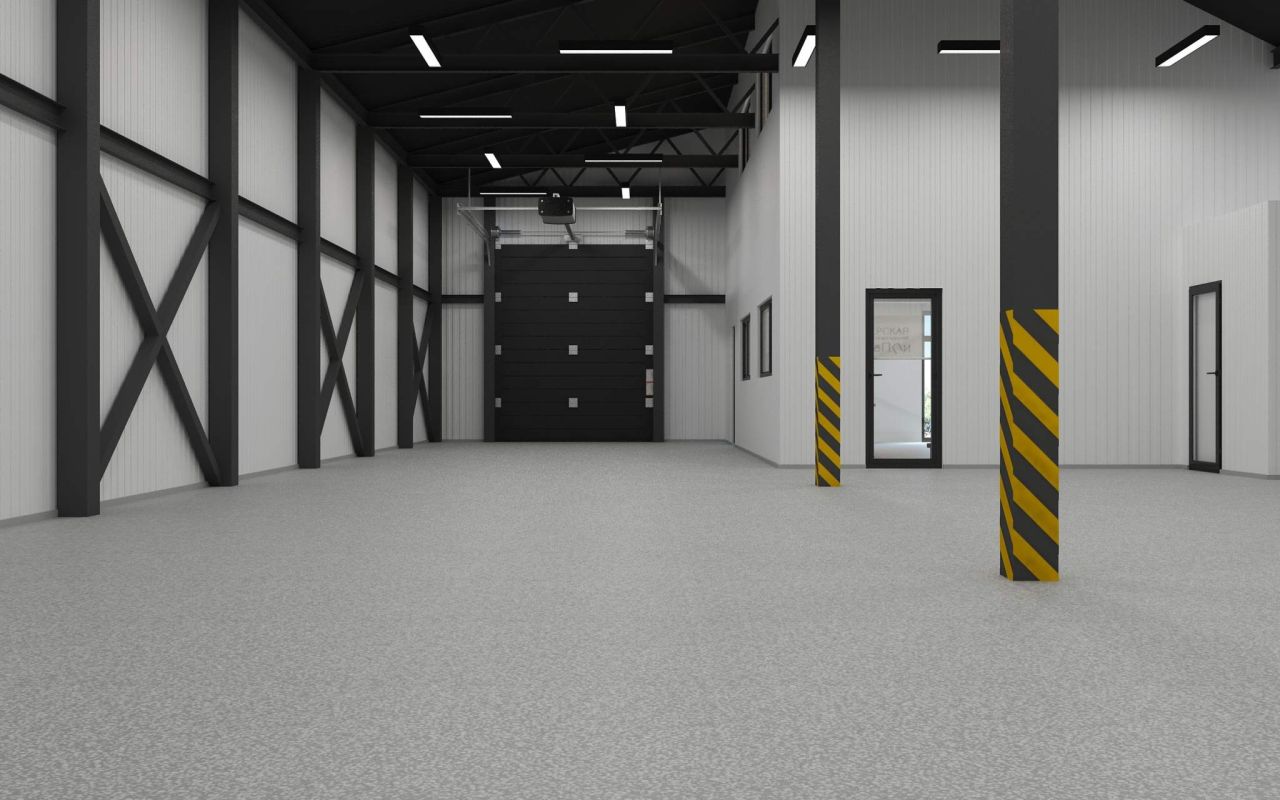 - Полы: бетон с антипылевым топпингом, выдерживает интенсивную нагрузку 3 тн/м2.